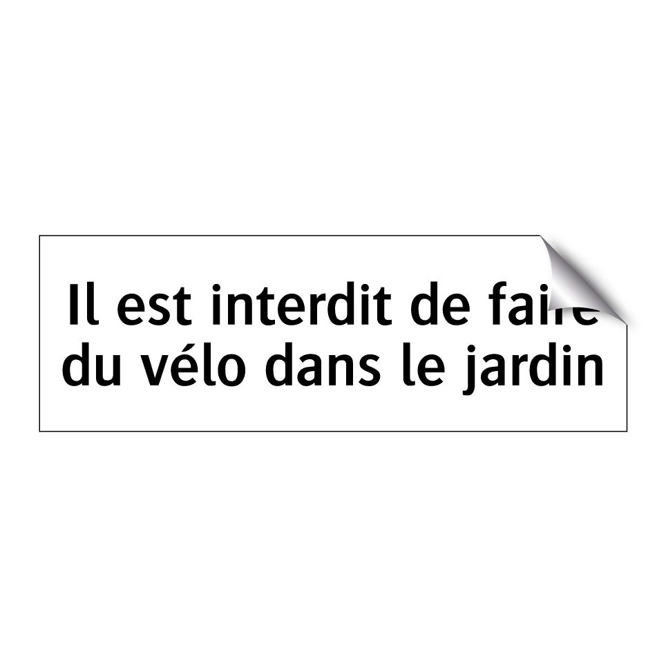 Panneau d'interdiction avec le texte : "Il est interdit de faire du vélo dans le jardin"