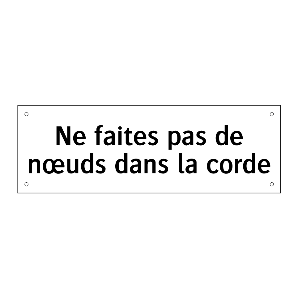 Panneau d'interdiction avec le texte : "Ne faites pas de nœuds dans la corde"