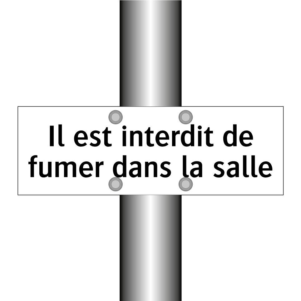 Panneau d'interdiction avec le texte : "Il est interdit de fumer dans la salle"