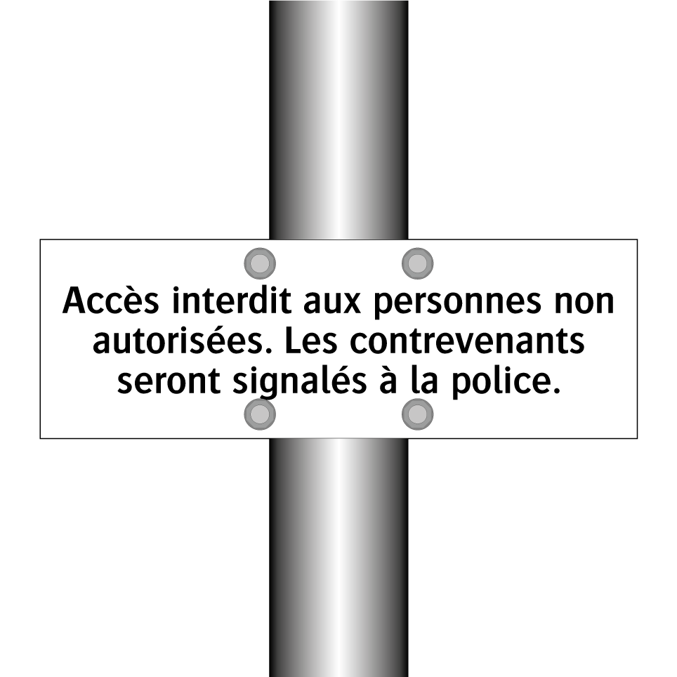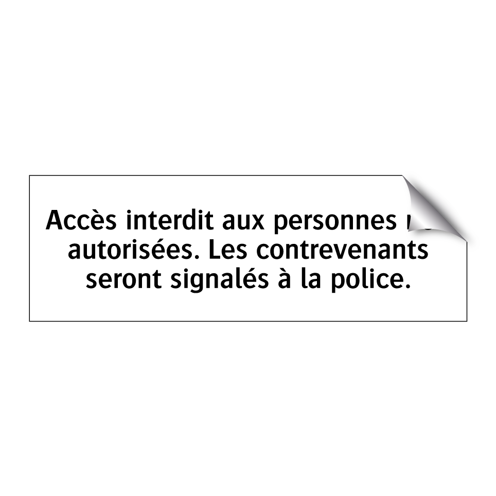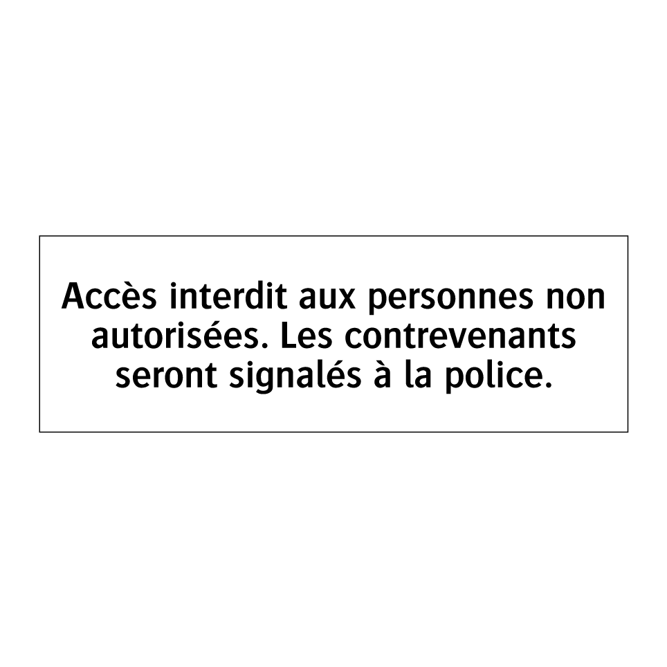 Panneau d'interdiction avec le texte : "Accès interdit aux personnes non autorisées. Les contrevenants seront signalés à la police."