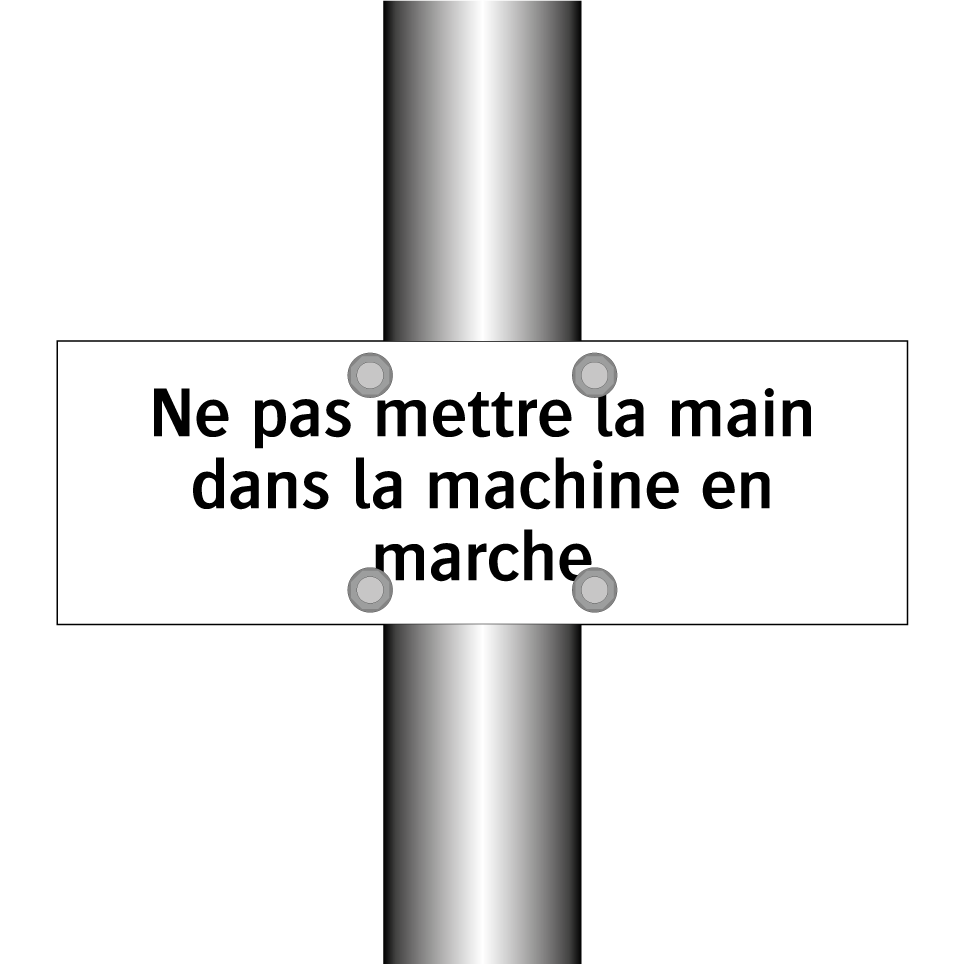 Panneau d'interdiction avec le texte : "Ne pas mettre la main dans la machine en marche"