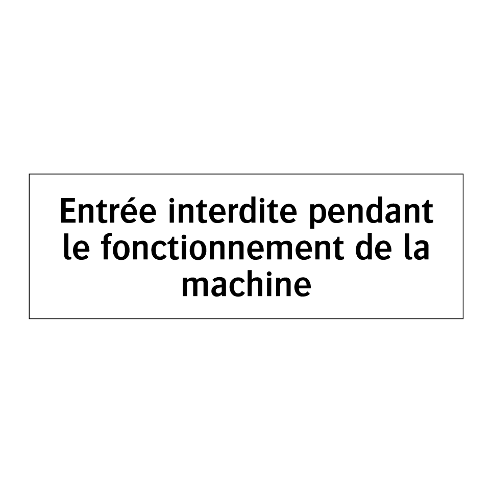 Panneau d'interdiction avec le texte : "Entrée interdite pendant le fonctionnement de la machine"