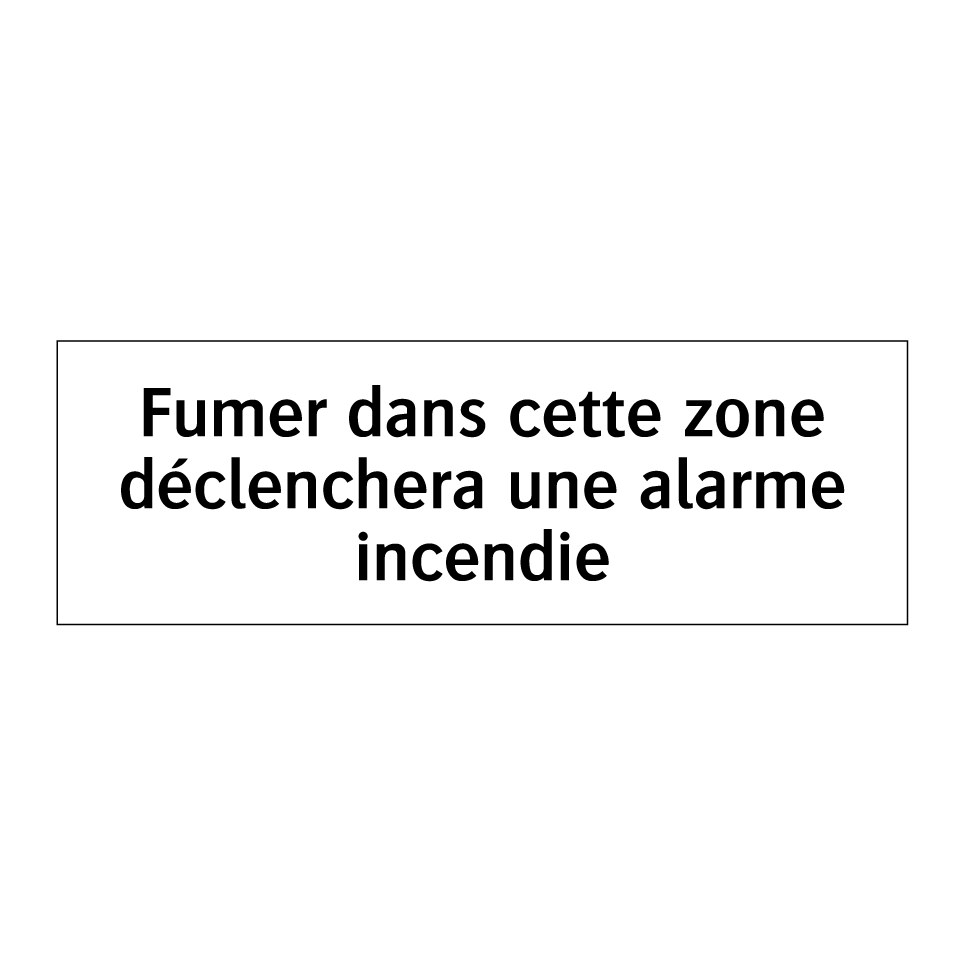 Panneau d'interdiction avec le texte : "Fumer dans cette zone déclenchera une alarme incendie"