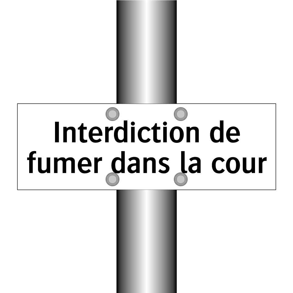 Panneau d'interdiction avec le texte : "Interdiction de fumer dans la cour"