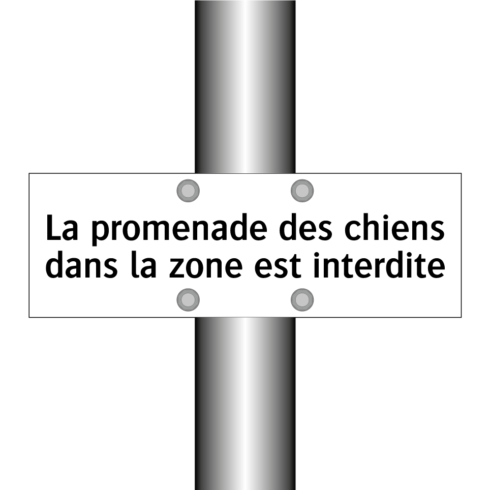 Panneau d'interdiction avec le texte : "La promenade des chiens dans la zone est interdite"