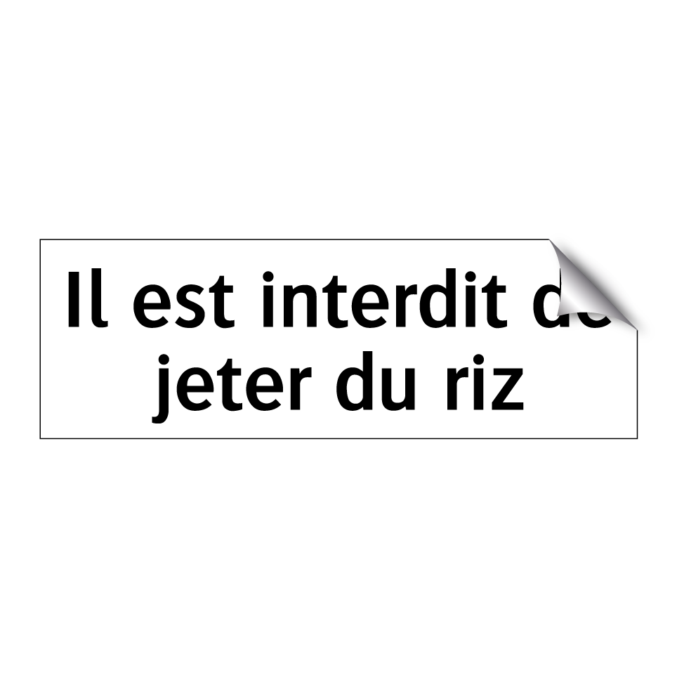 Panneau d'interdiction avec le texte : "Il est interdit de jeter du riz"