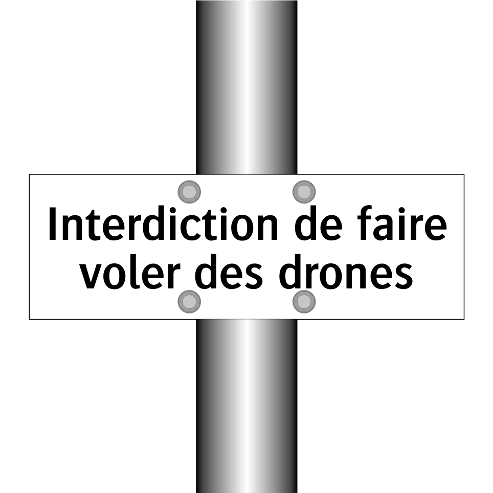 Panneau d'interdiction avec le texte : "Interdiction de faire voler des drones"