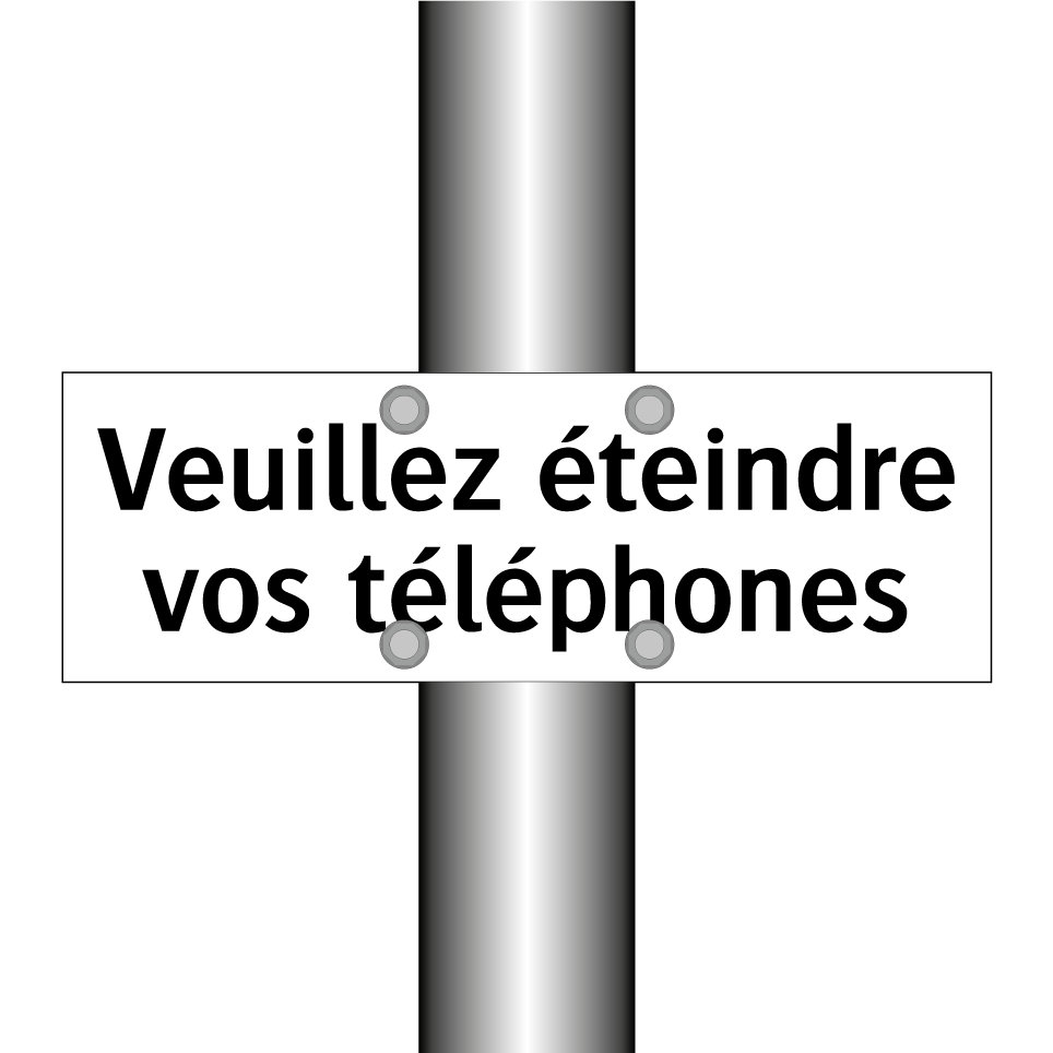 Panneau d'interdiction avec le texte : "Veuillez éteindre vos téléphones"
