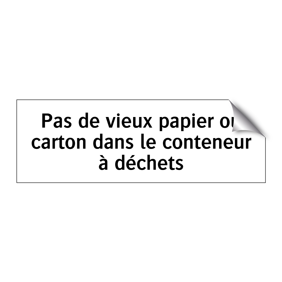 Panneau d'interdiction avec le texte : "Pas de vieux papier ou carton dans le conteneur à déchets"