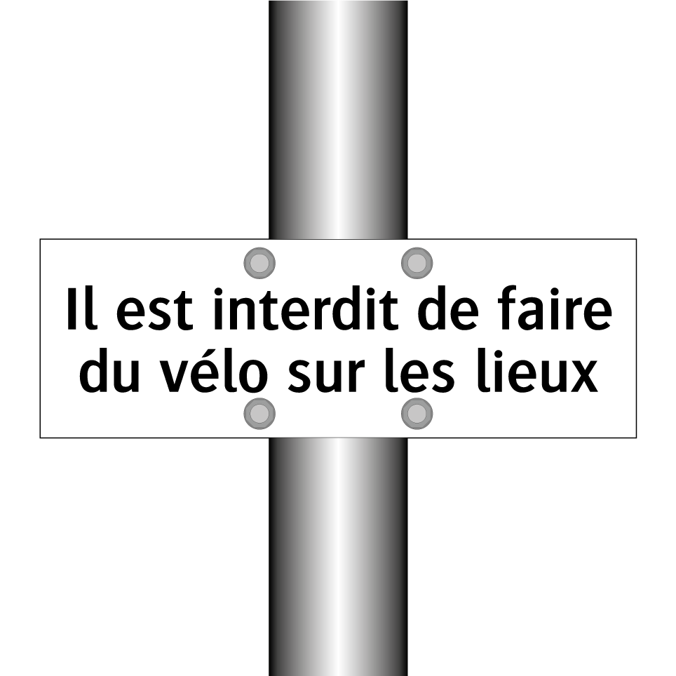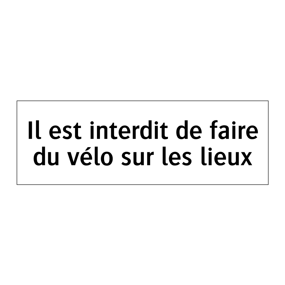 Panneau d'interdiction avec le texte : "Il est interdit de faire du vélo sur les lieux"