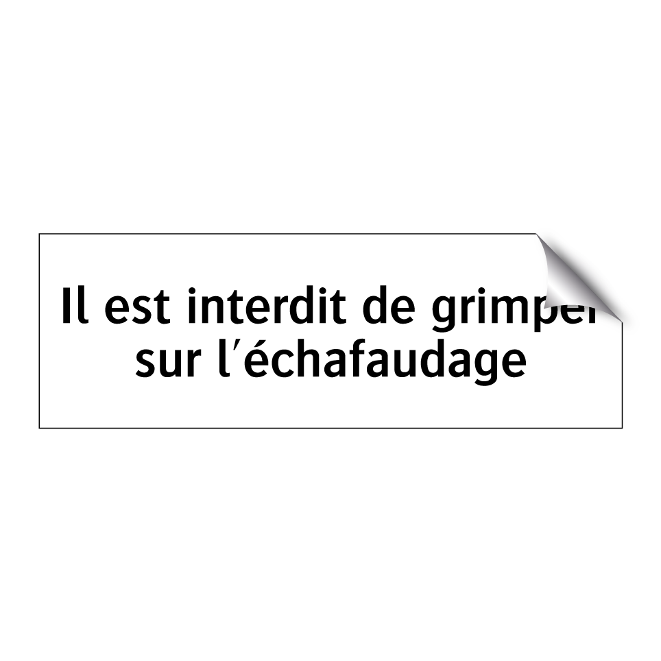 Panneau d'interdiction avec le texte : "Il est interdit de grimper sur l'échafaudage"