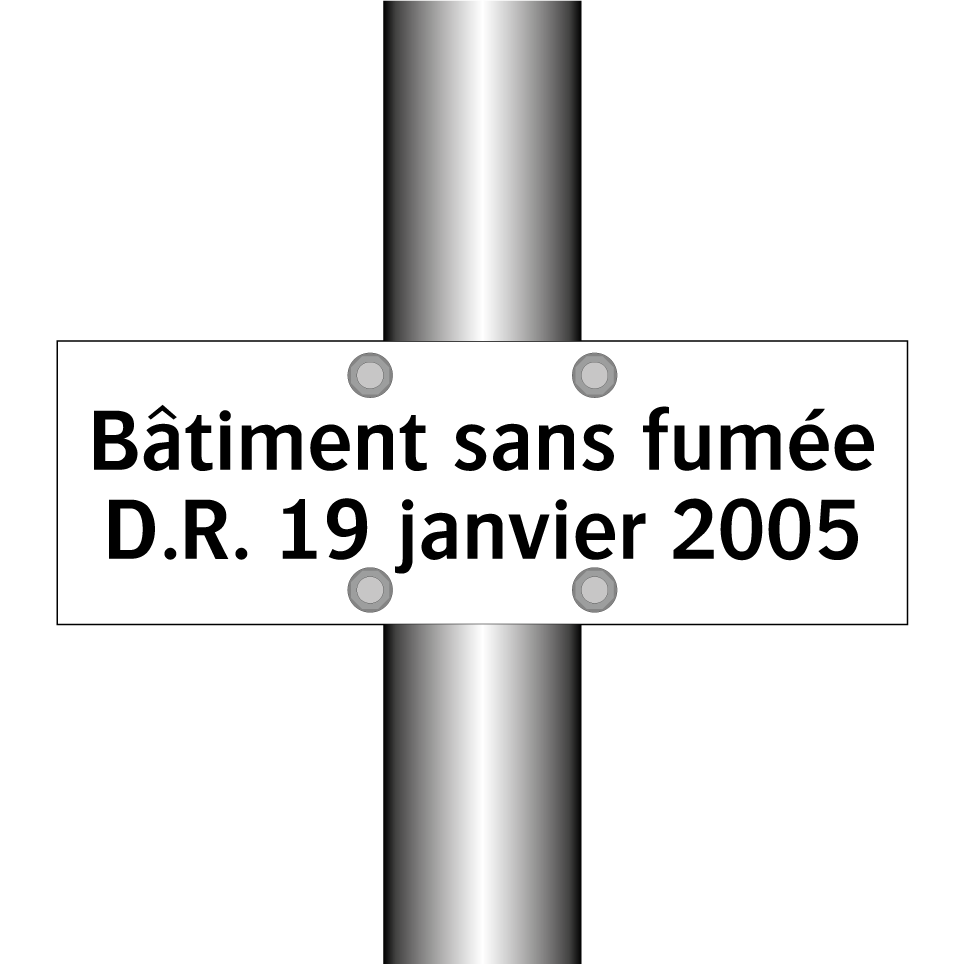 Panneau d'interdiction avec le texte : "Bâtiment sans fumée D.R. 19 janvier 2005"
