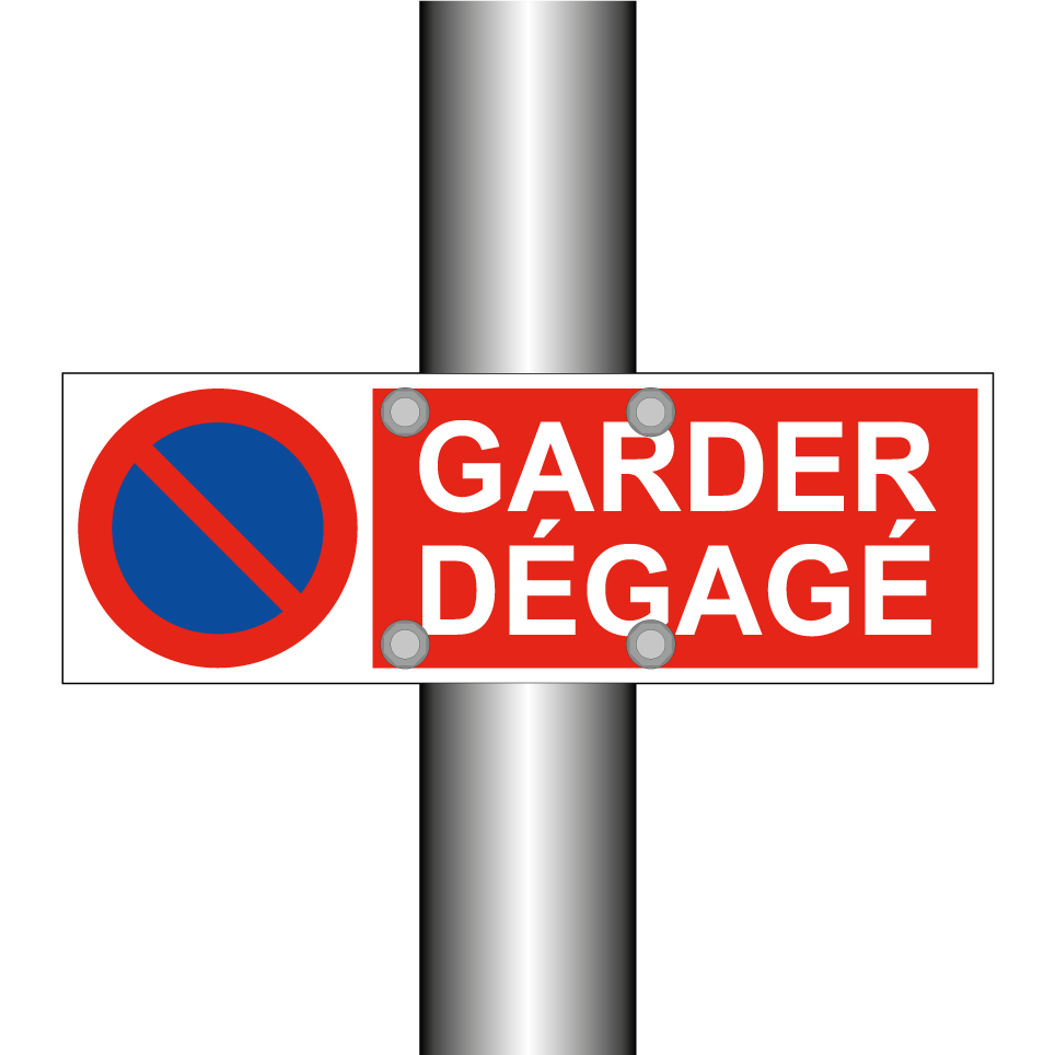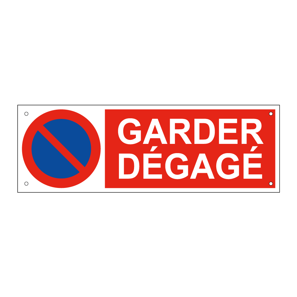 Panneau d'interdiction de stationner avec le texte : "Garder dégagé" et une symbolique claire.