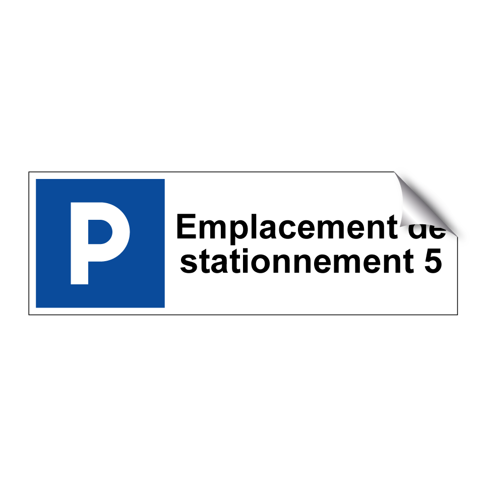 Panneau de stationnement avec le texte : "Emplacement de stationnement 5" et une symbolique claire.