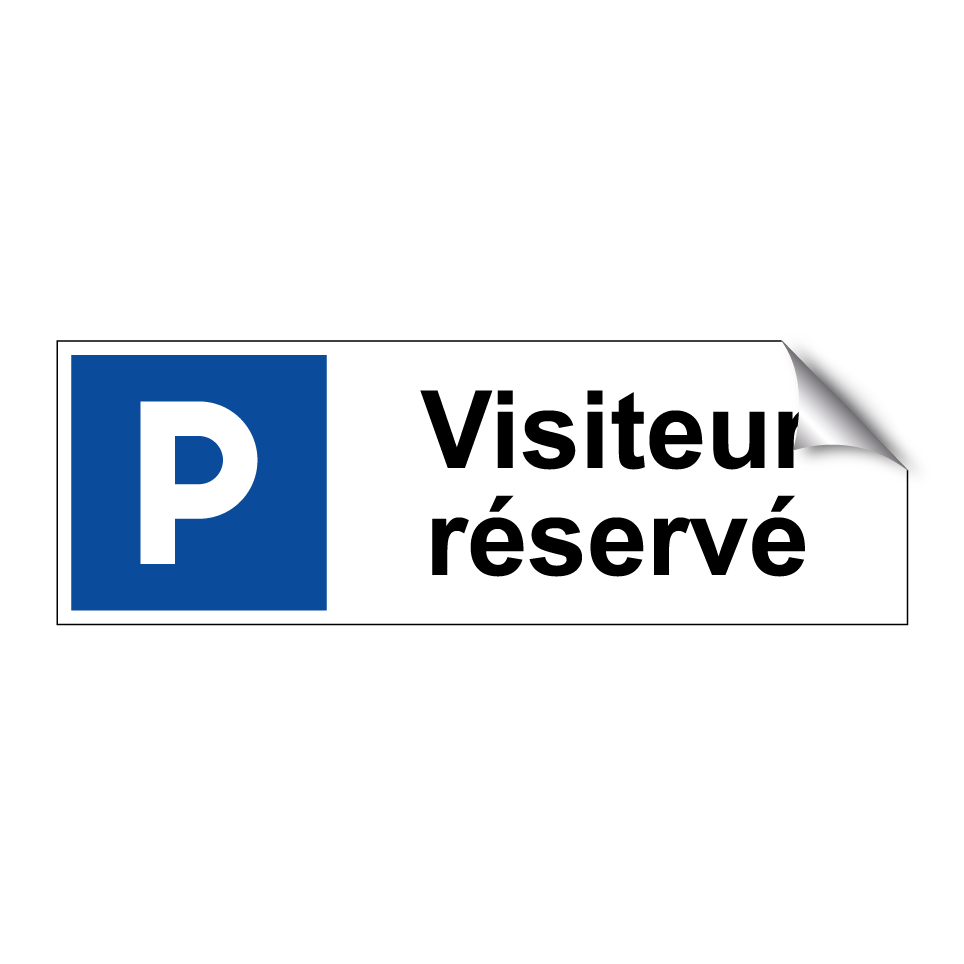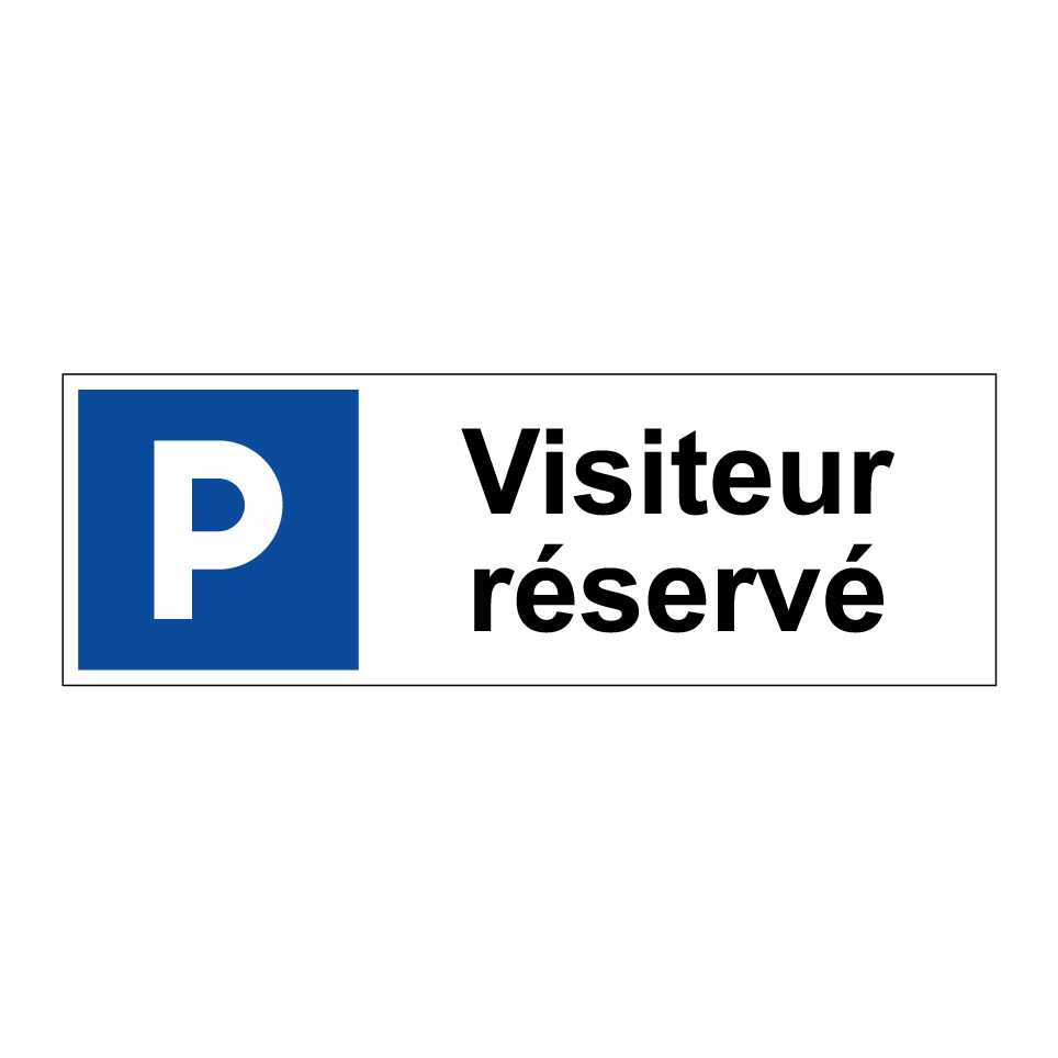 Panneau de stationnement avec le texte : "Visiteur réservé" et une symbolique claire.