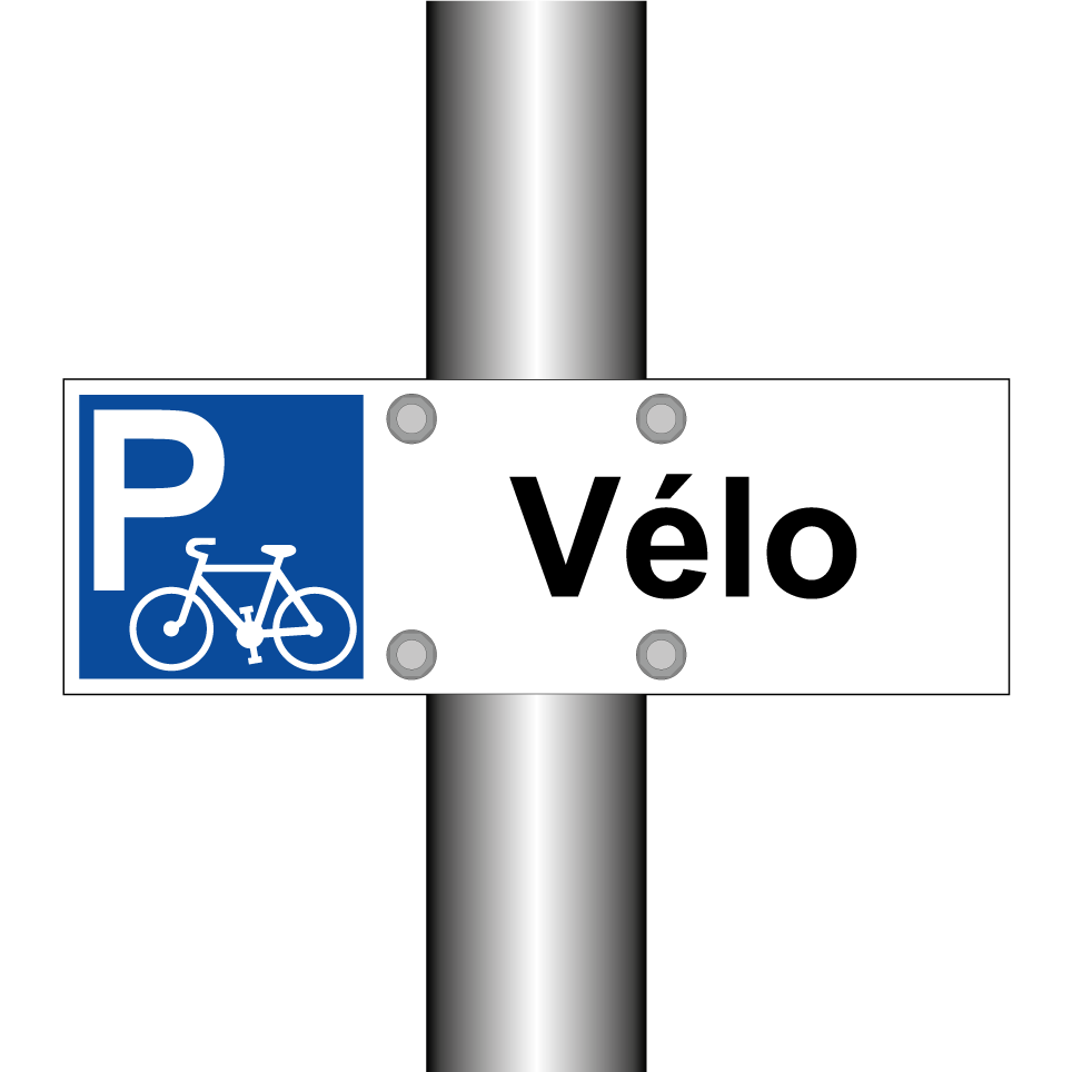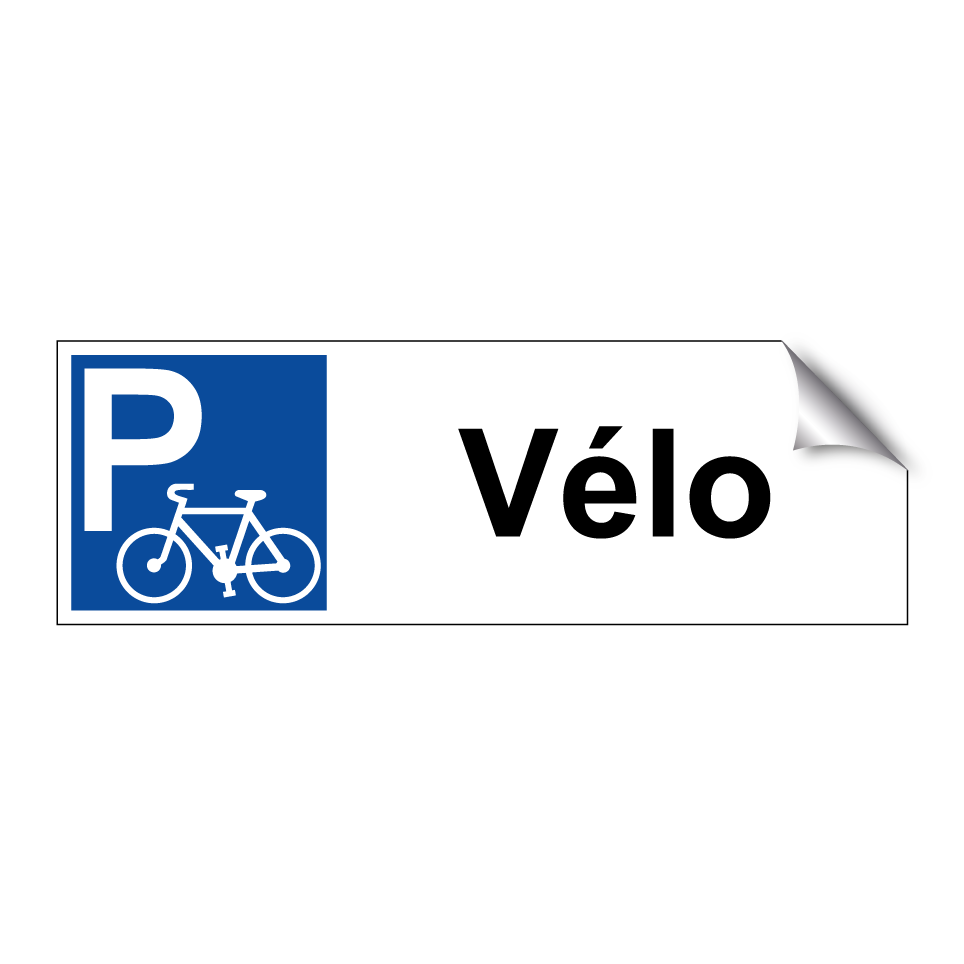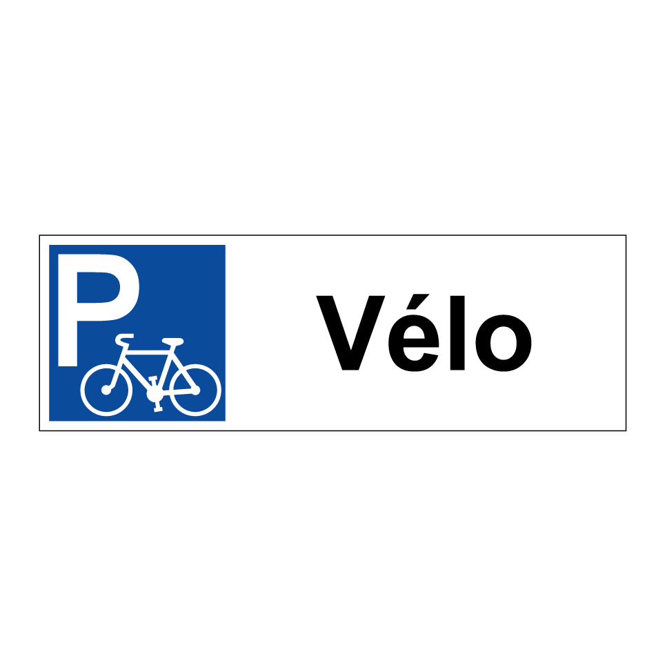 Panneau de stationnement avec le texte : "Vélo" et une symbolique claire.