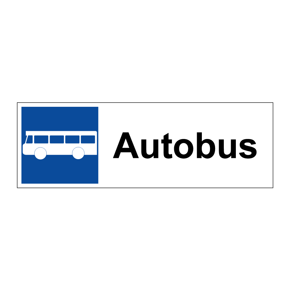 Panneau de stationnement avec le texte : "Autobus" et une symbolique claire.