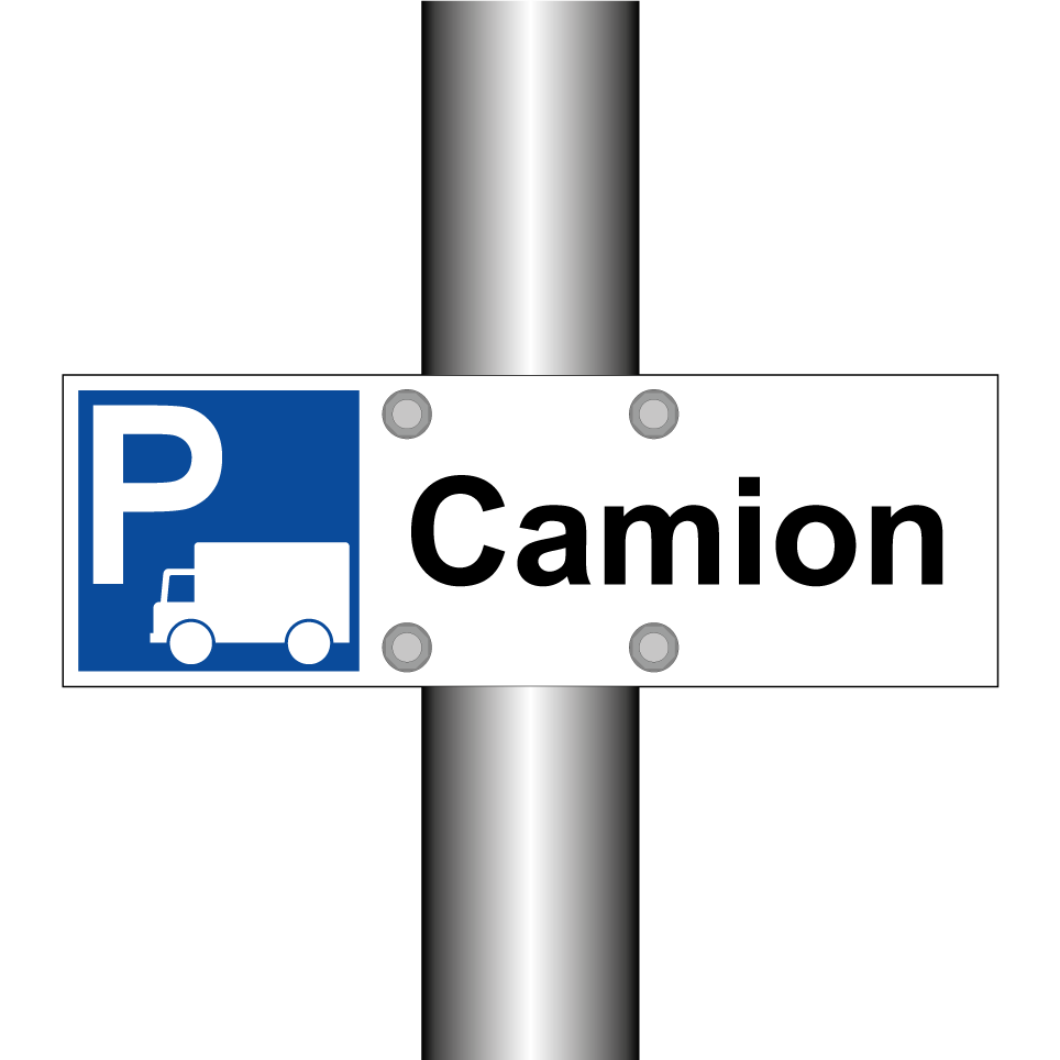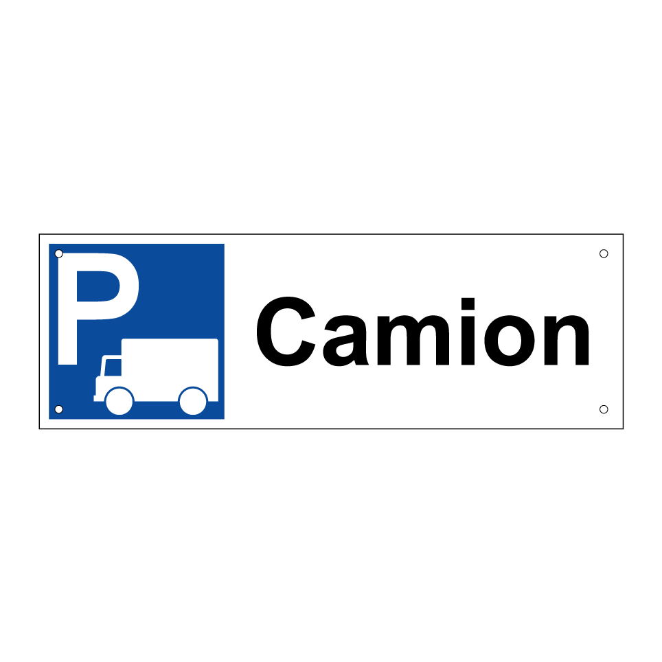 Panneau de stationnement avec le texte : "Camion" et une symbolique claire.
