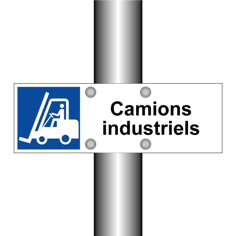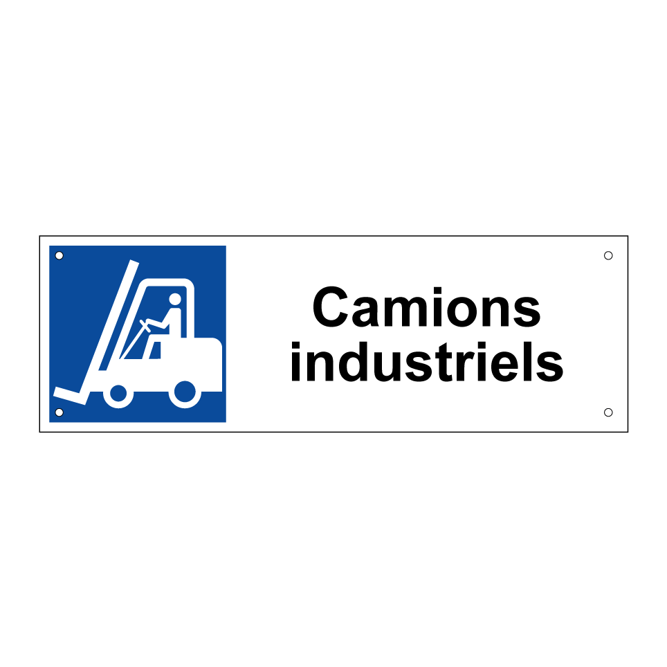 Panneau de stationnement avec le texte : "Camions industriels" et une symbolique claire.