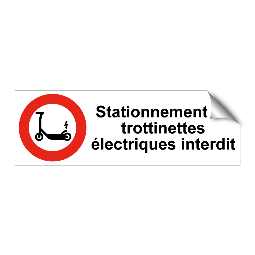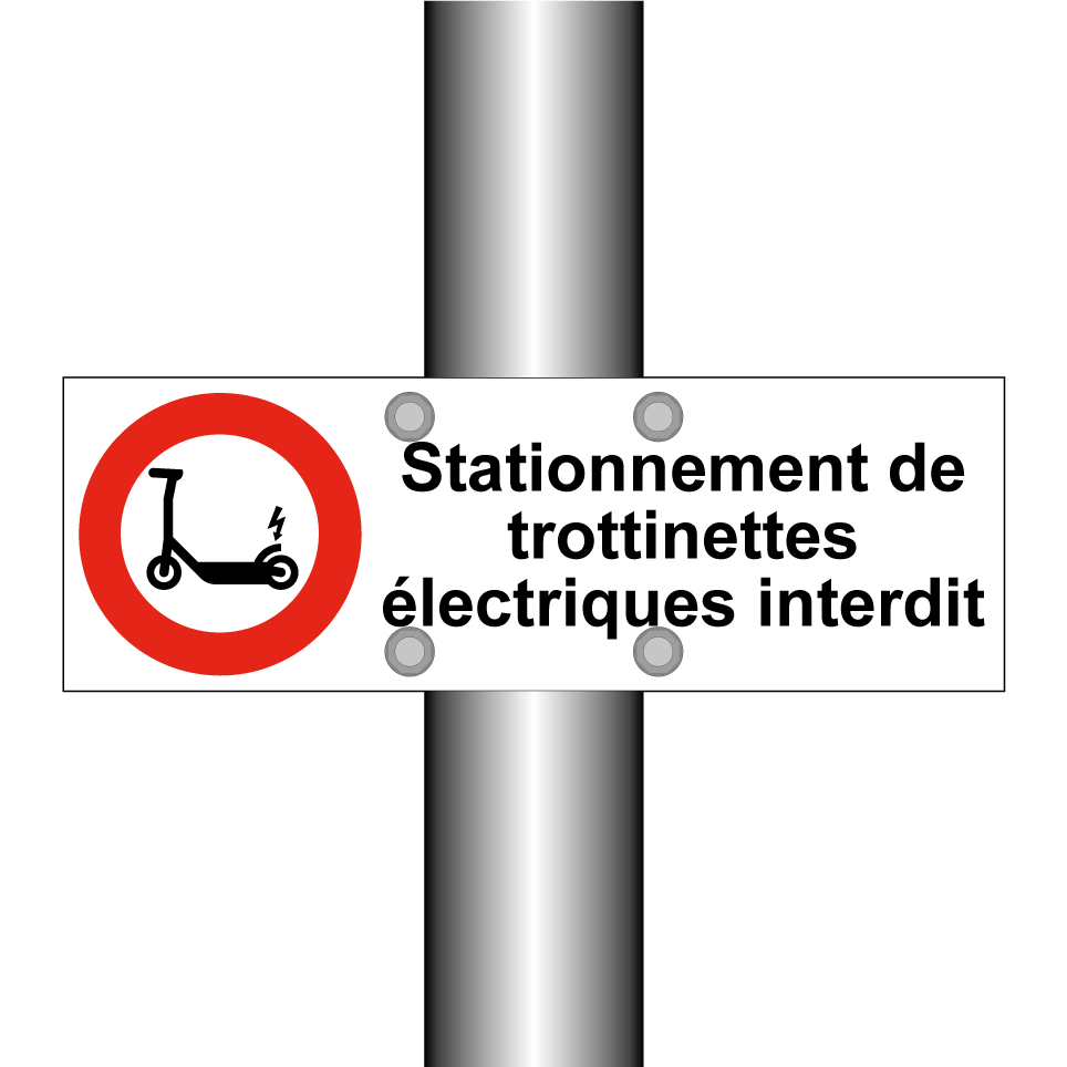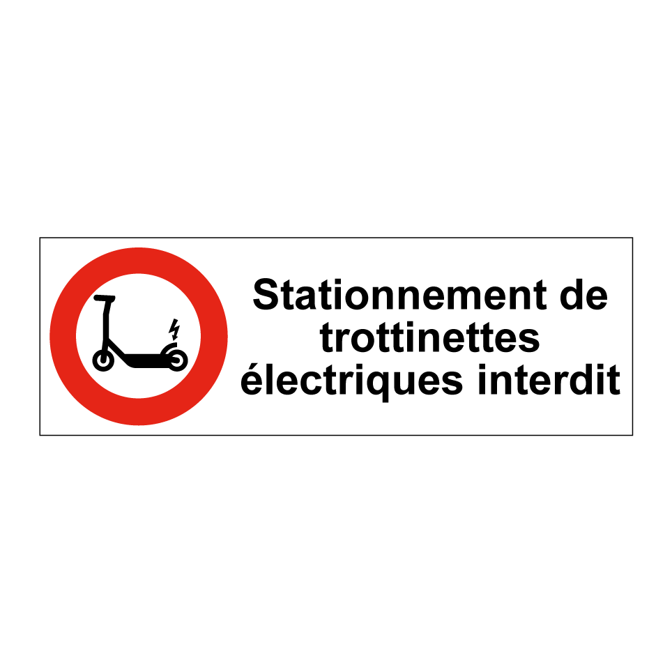 Panneau d'interdiction de stationner avec le texte : "Stationnement de trottinettes électriques interdit" et une symbolique claire.