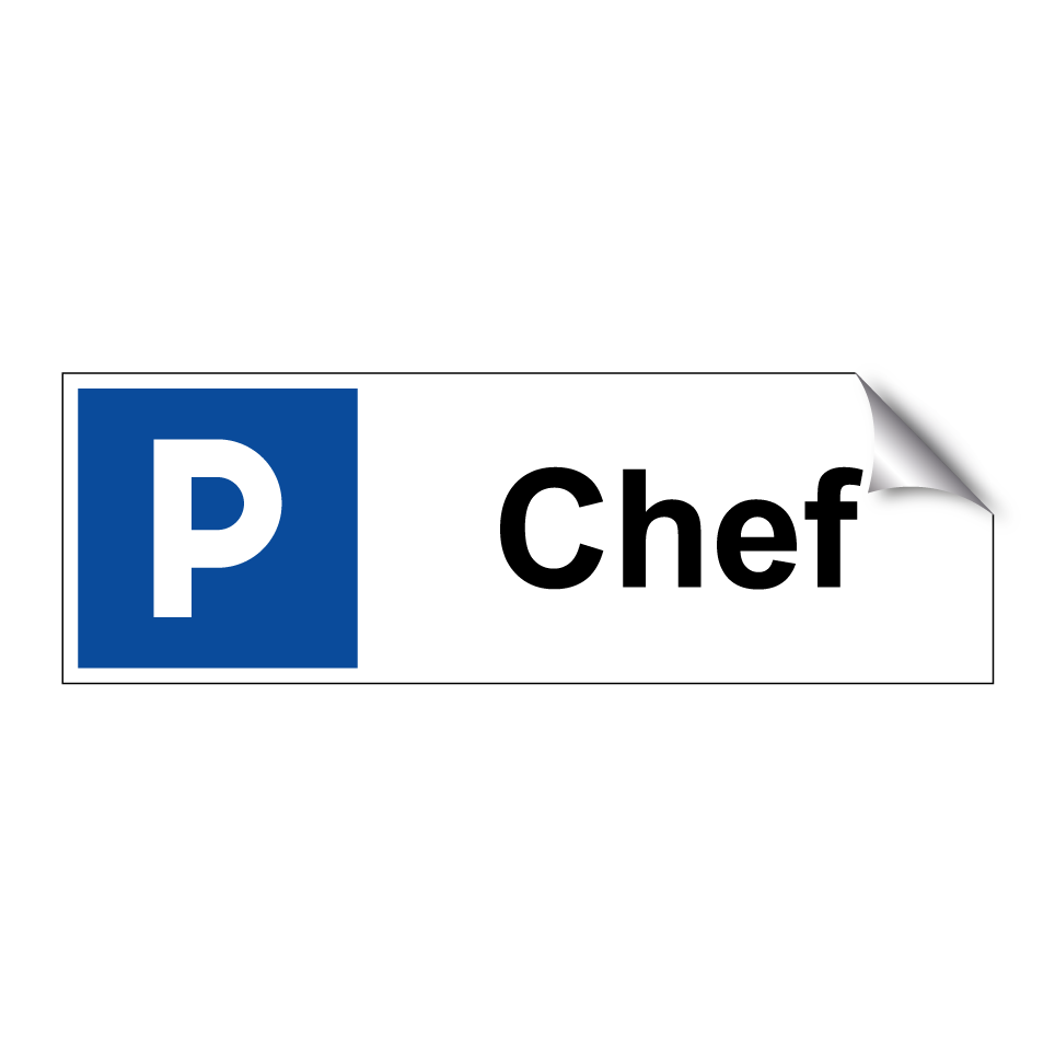 Panneau de stationnement avec le texte : "Chef" et une symbolique claire.