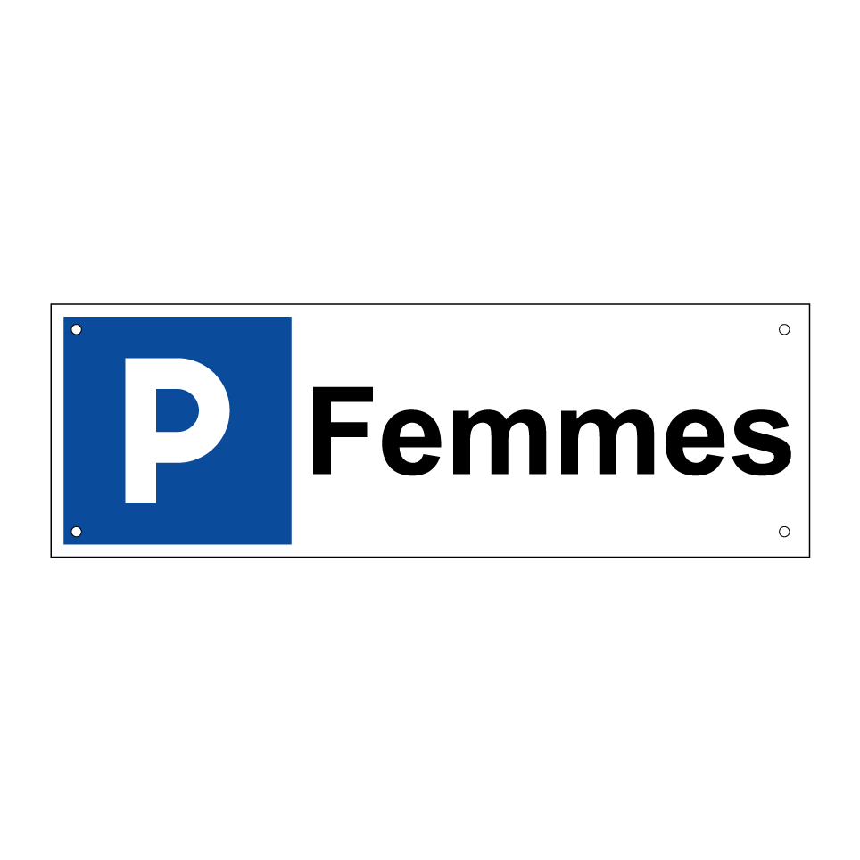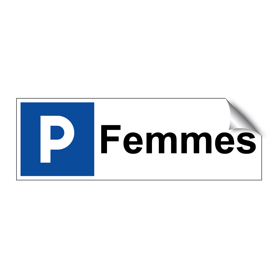 Panneau de stationnement avec le texte : "Femmes" et une symbolique claire.