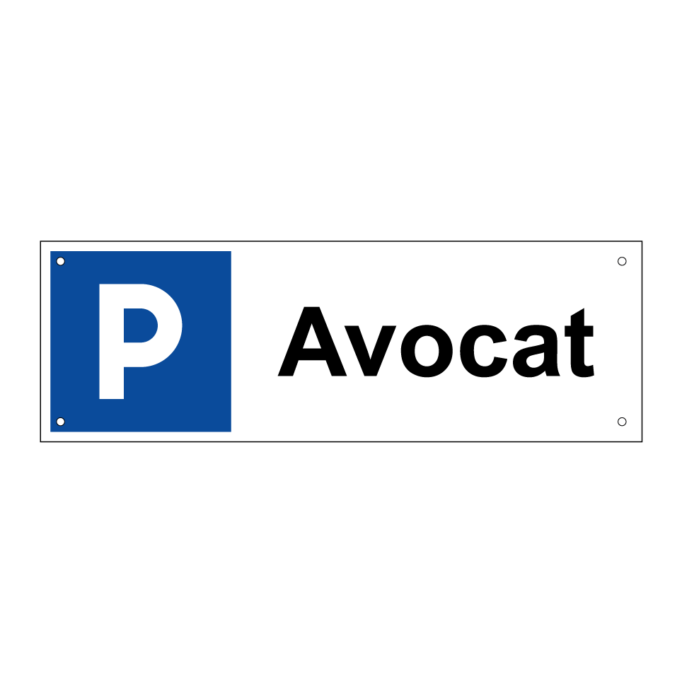 Panneau de stationnement avec le texte : "Avocat" et une symbolique claire.