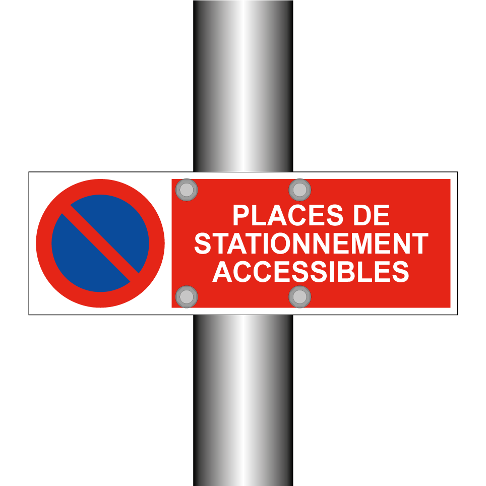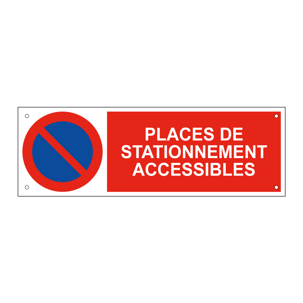 Panneau d'interdiction de stationner avec le texte : "Places de stationnement accessibles" et une symbolique claire.