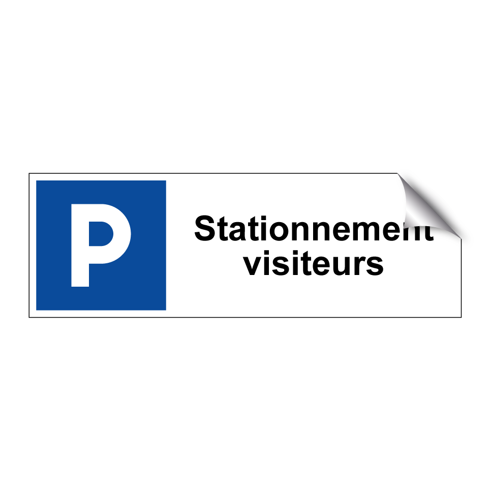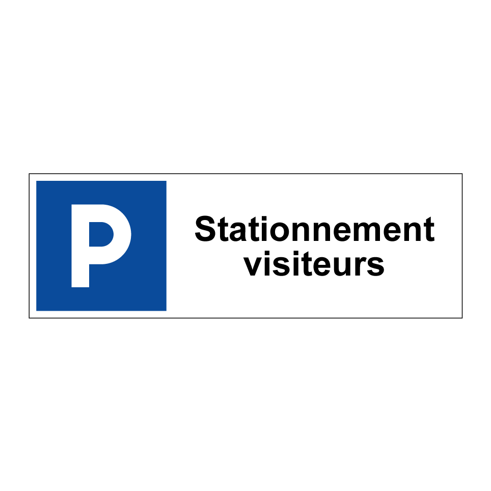 Panneau de stationnement avec le texte : "Stationnement visiteurs" et une symbolique claire.