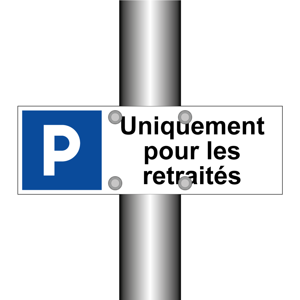 Panneau de stationnement avec le texte : "Uniquement pour les retraités" et une symbolique claire.