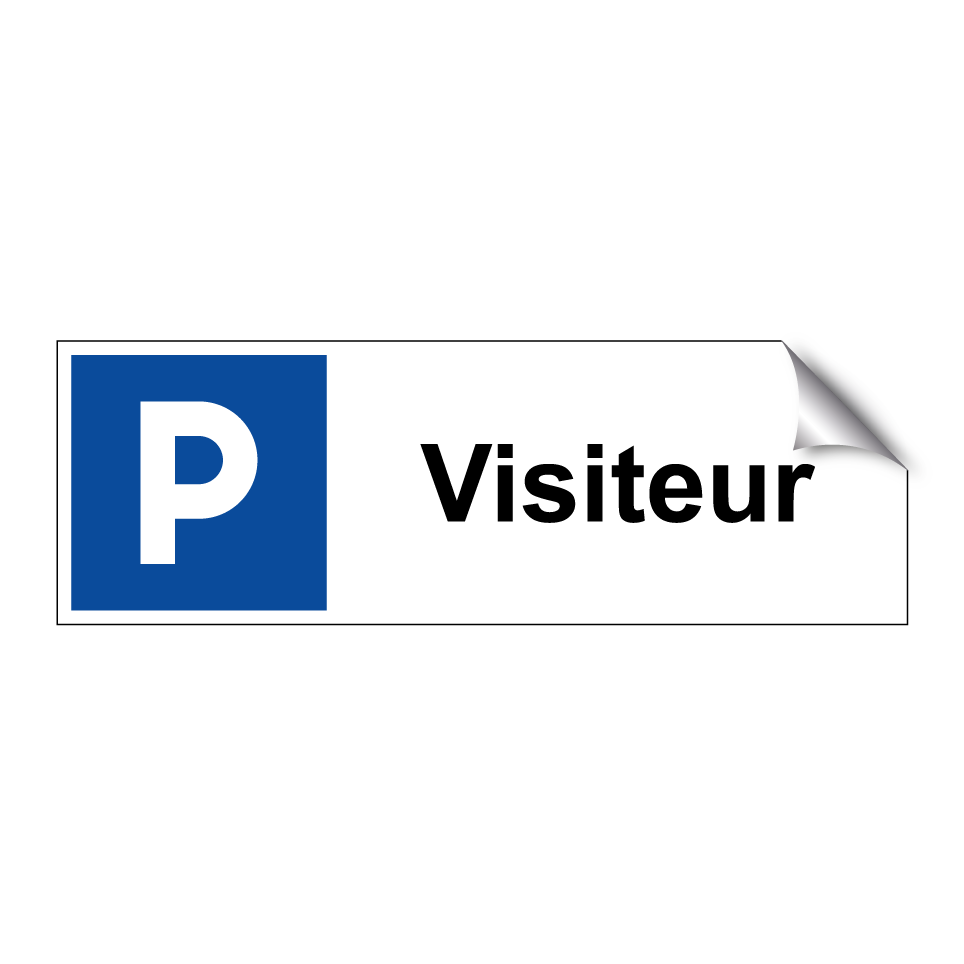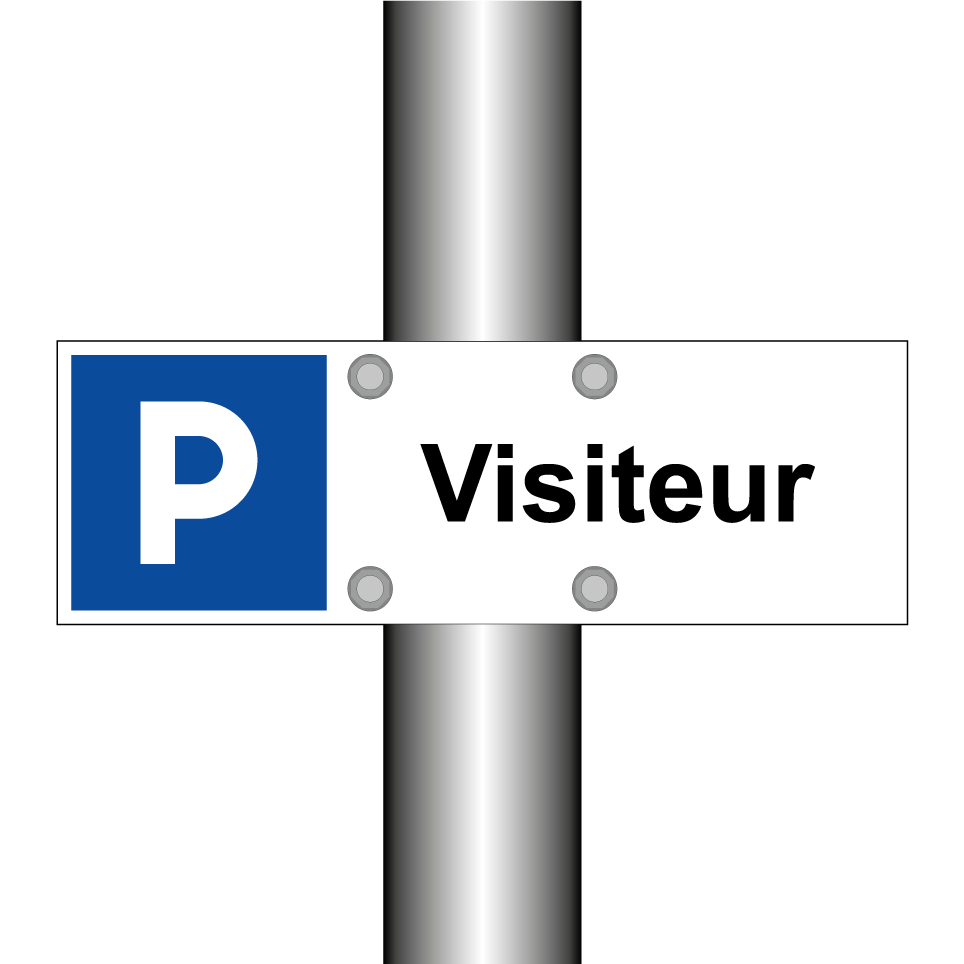 Panneau de stationnement avec le texte : "Visiteur" et une symbolique claire.