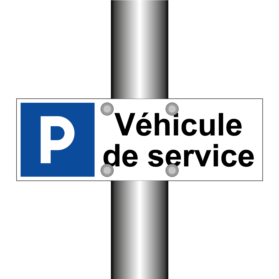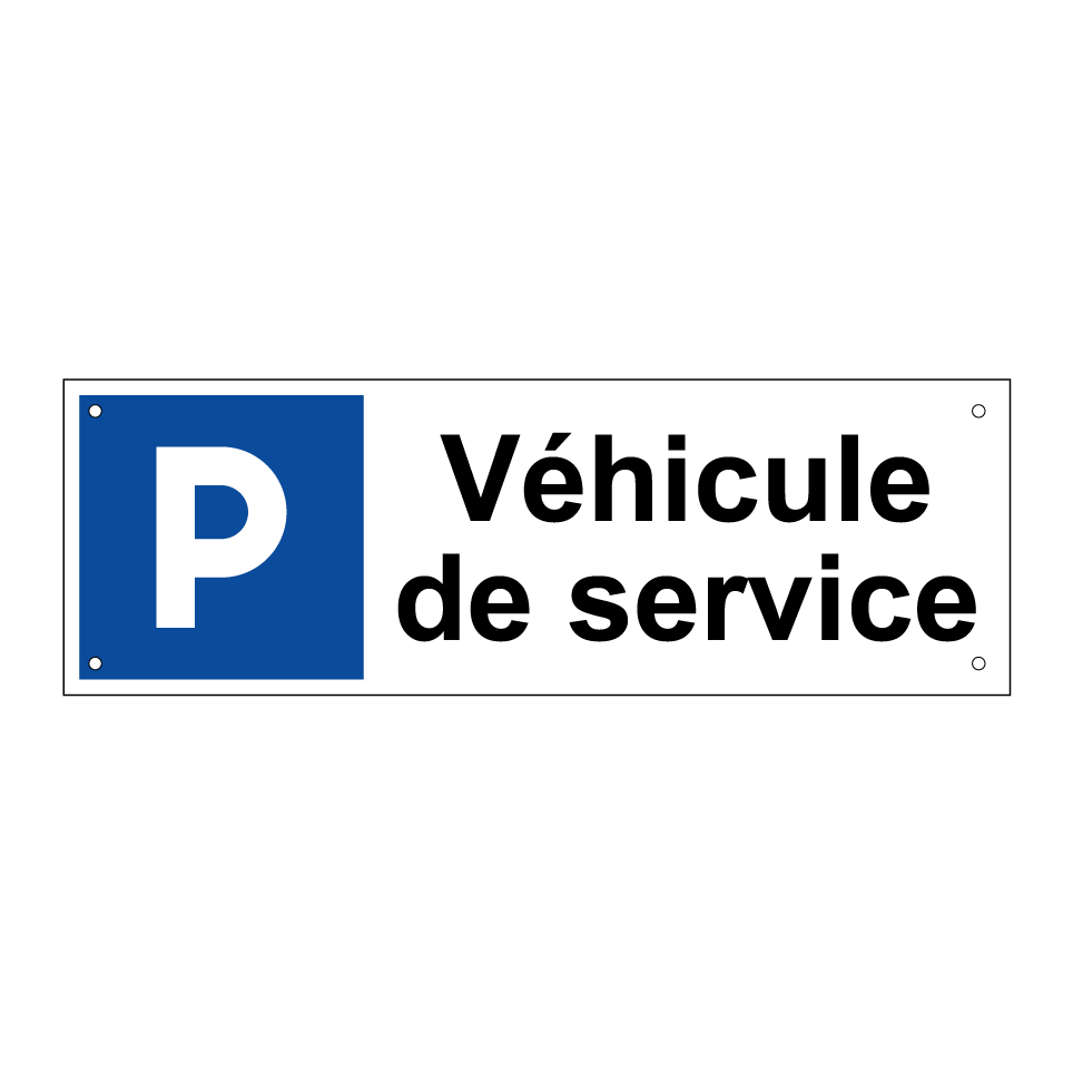 Panneau de stationnement avec le texte : "Véhicule de service" et une symbolique claire.