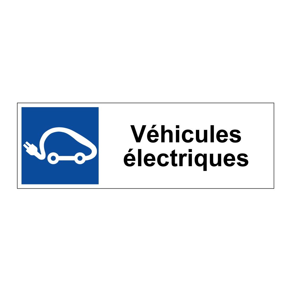 Panneau de stationnement avec le texte : "Véhicules électriques" et une symbolique claire.