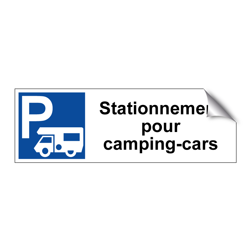 Panneau de stationnement avec le texte : "Stationnement pour camping-cars" et une symbolique claire.