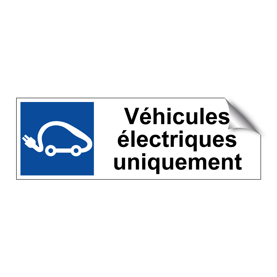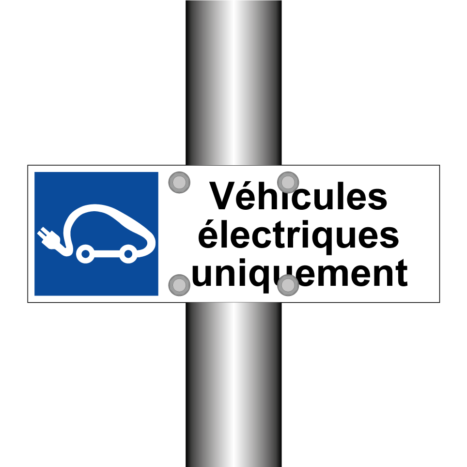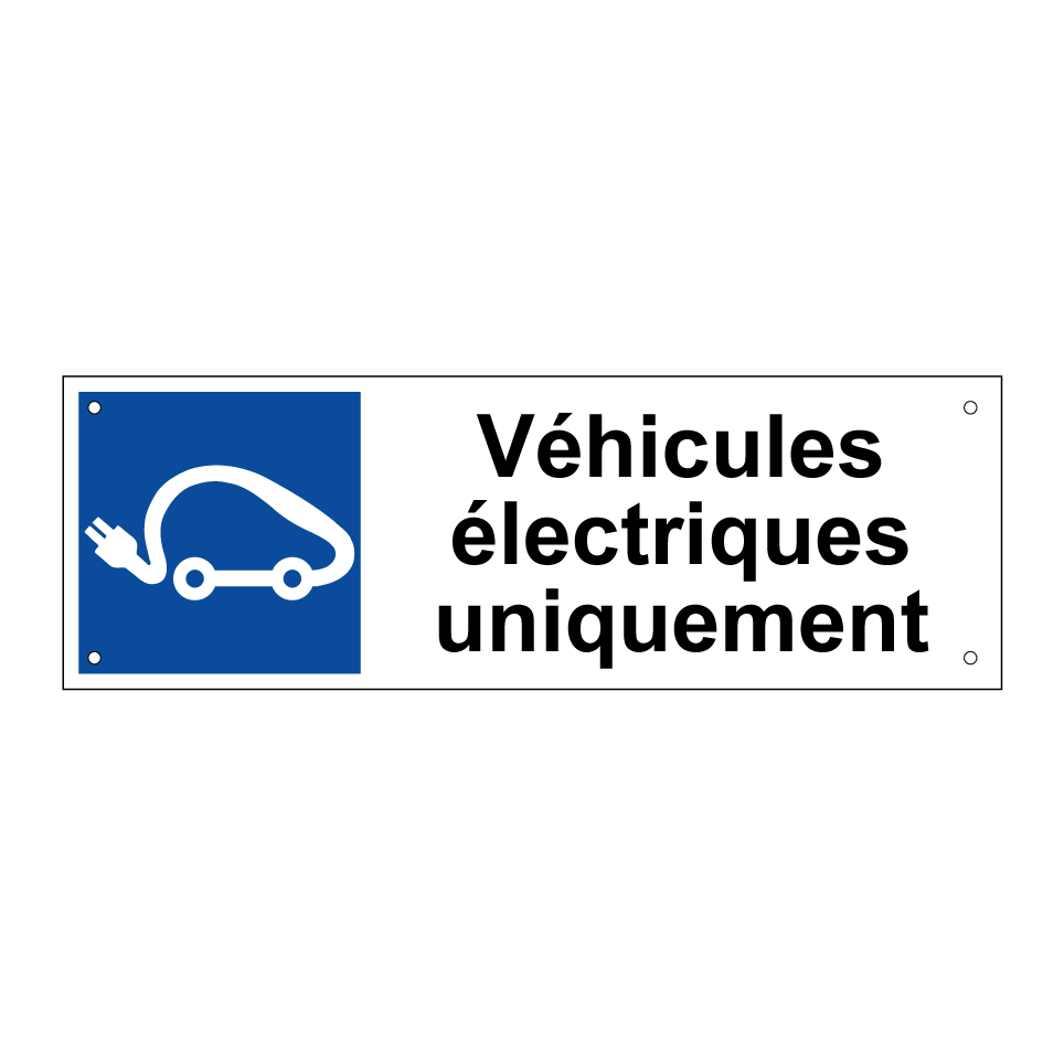 Panneau de stationnement avec le texte : "Véhicules électriques uniquement" et une symbolique claire.