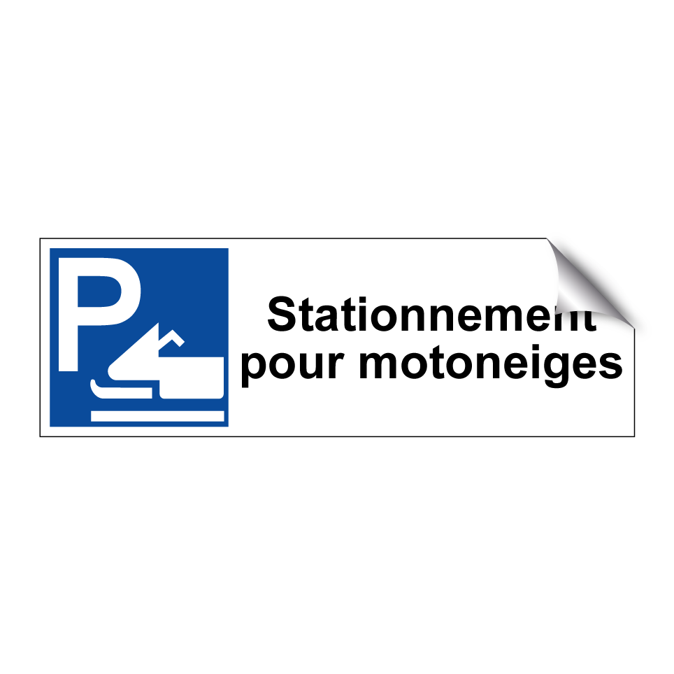Panneau de stationnement avec le texte : "Stationnement pour motoneiges" et une symbolique claire.