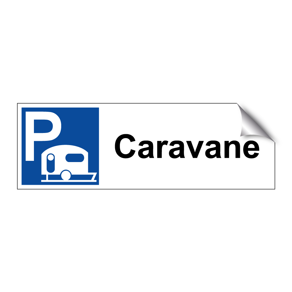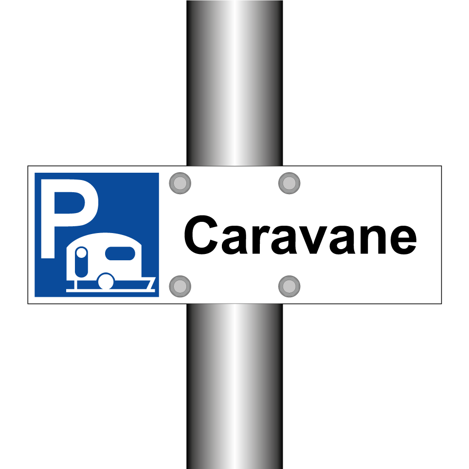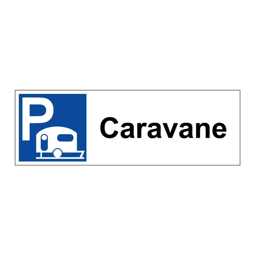 Panneau de stationnement avec le texte : "Caravane" et une symbolique claire.