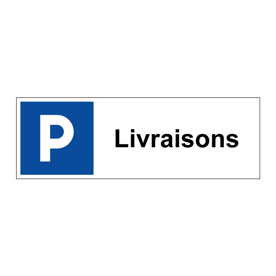 Panneau de stationnement avec le texte : "Livraisons" et une symbolique claire.