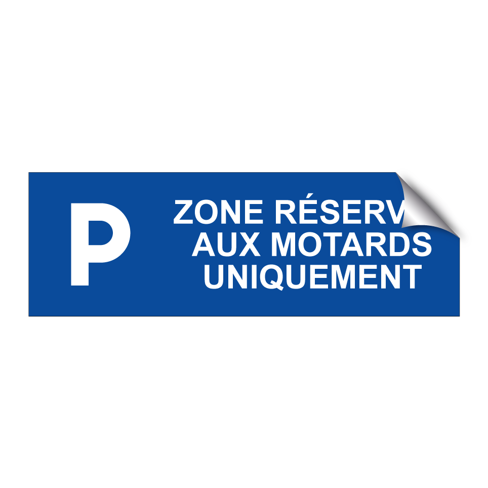 Panneau de stationnement avec le texte : "Zone réservée aux motards uniquement" et une symbolique claire.