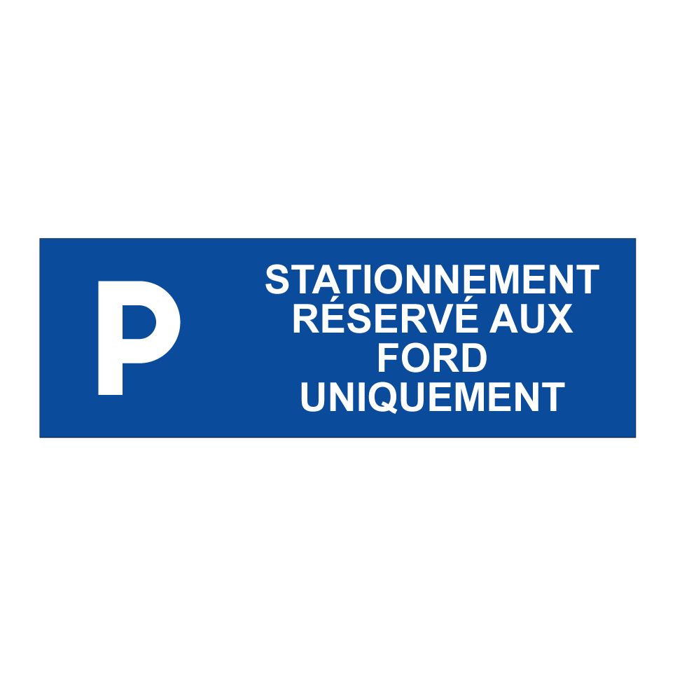 Panneau de stationnement avec le texte : "Stationnement réservé aux Ford uniquement" et une symbolique claire.