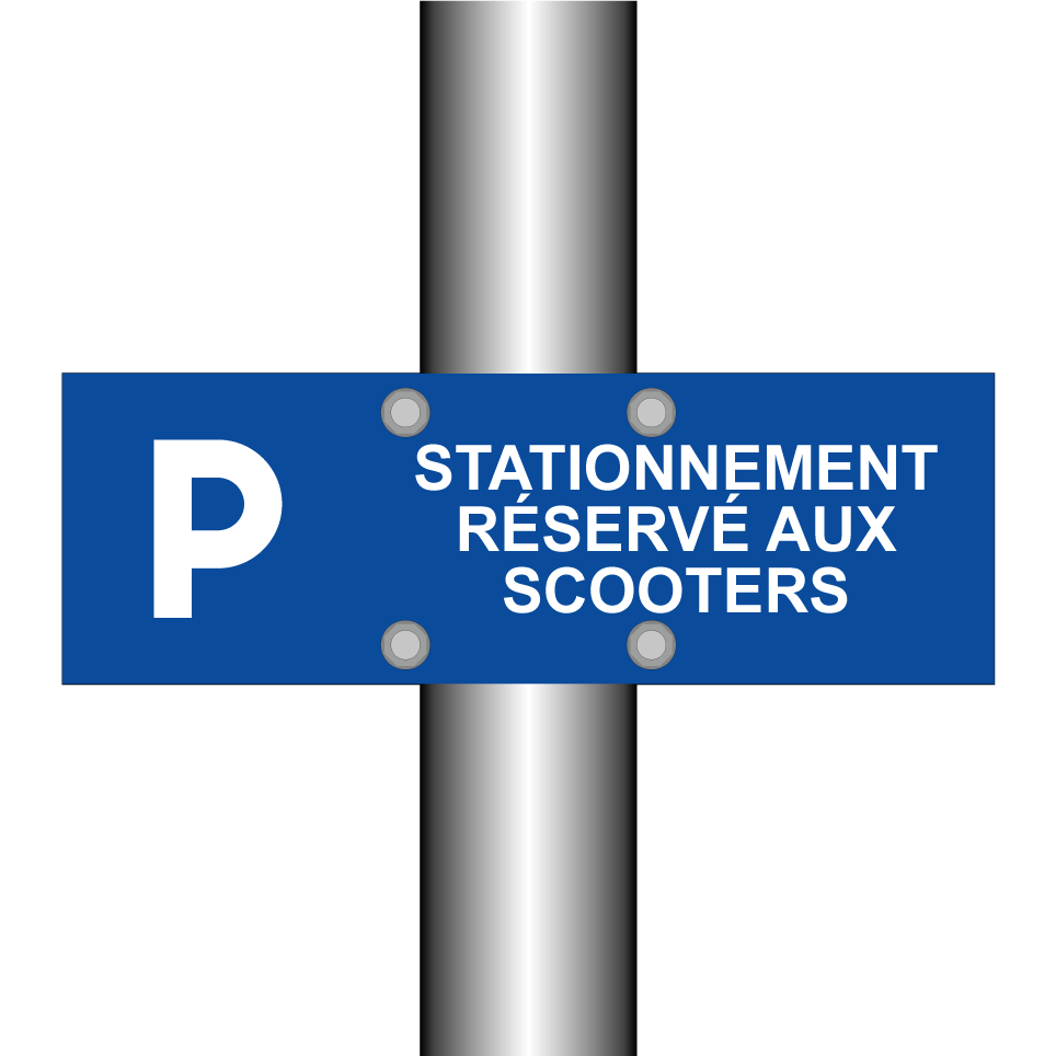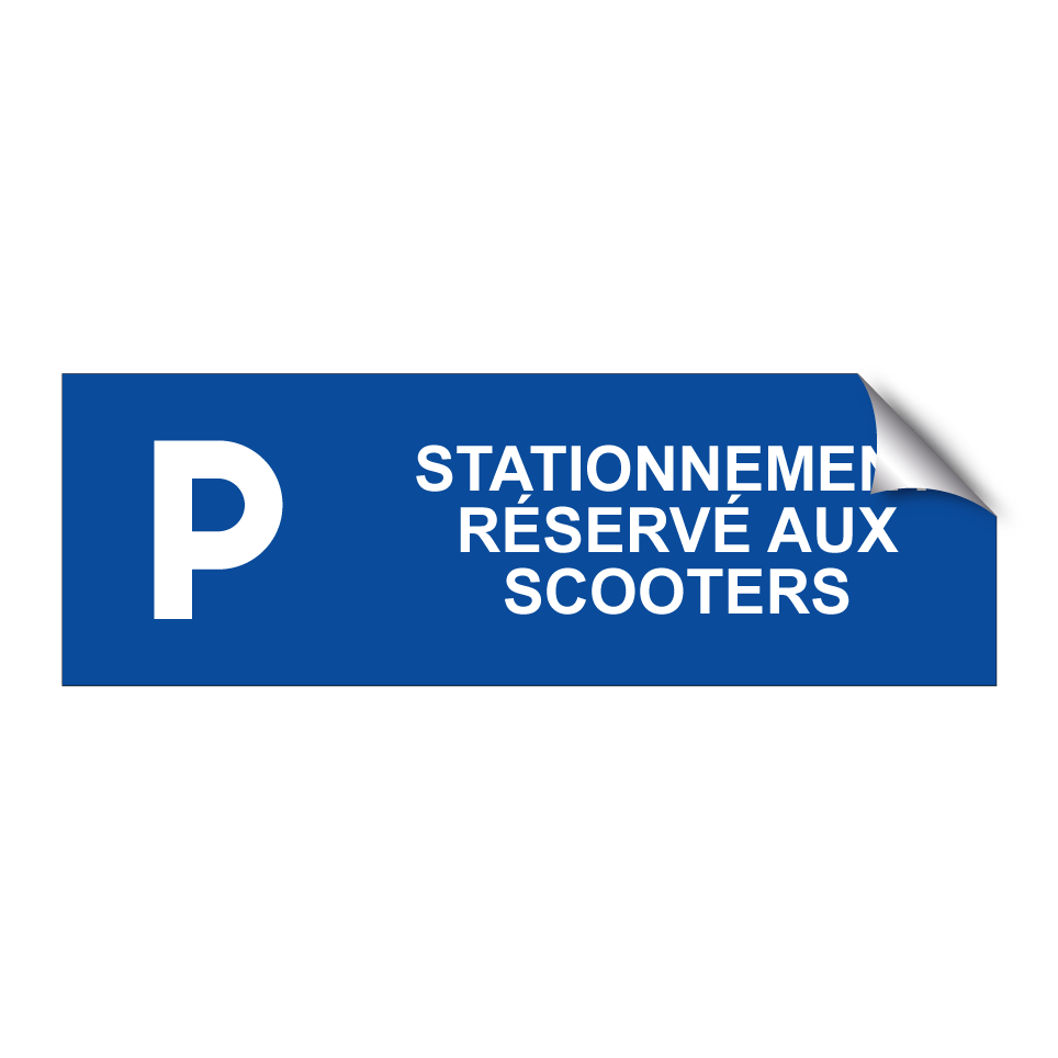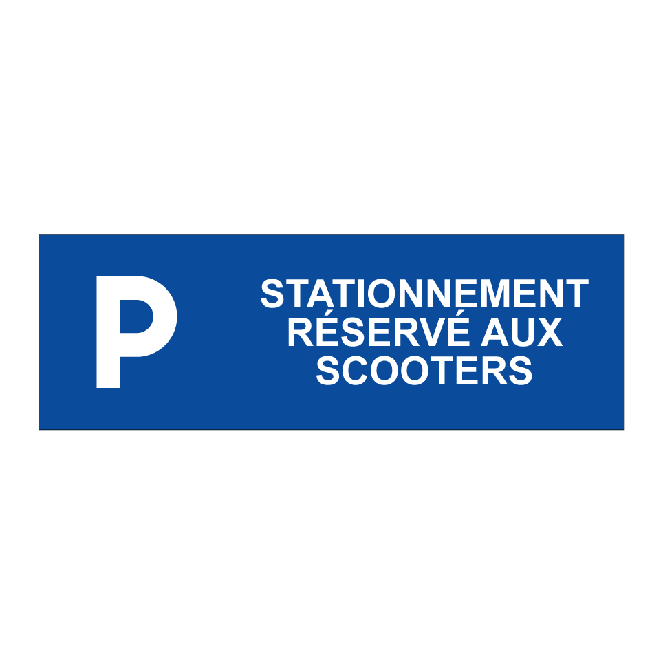 Panneau de stationnement avec le texte : "Stationnement réservé aux scooters" et une symbolique claire.