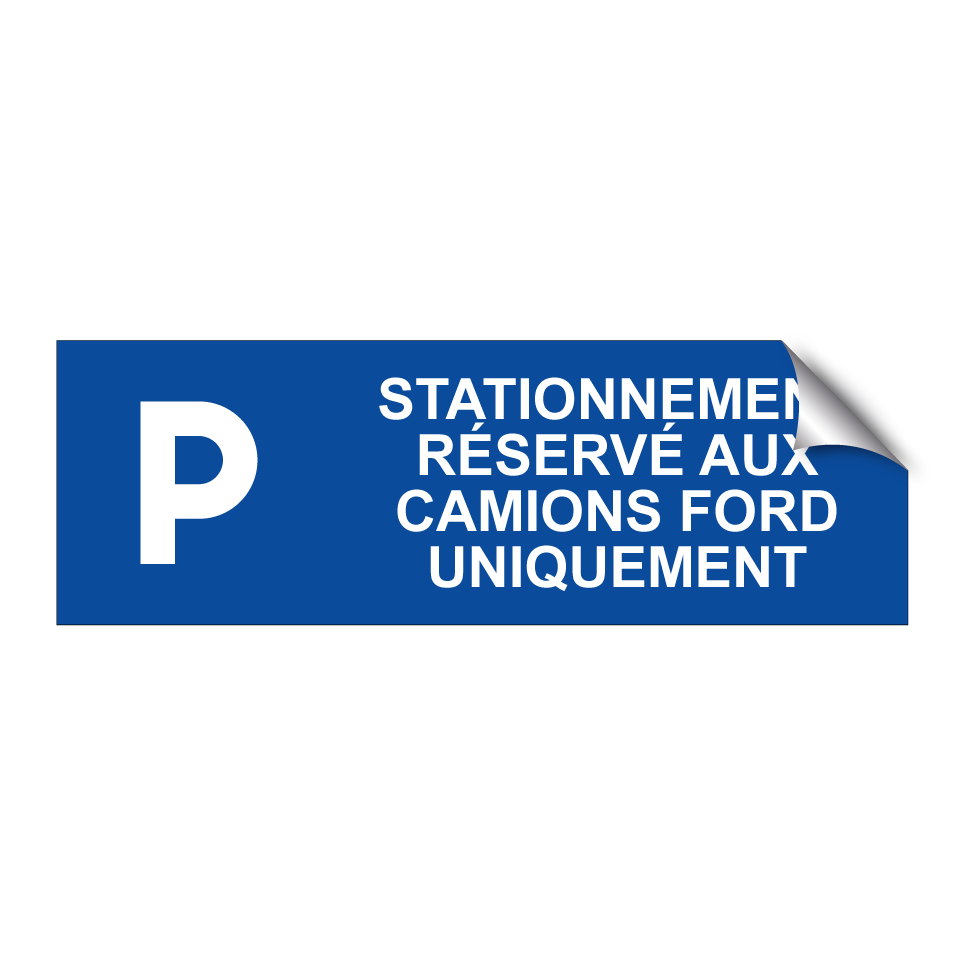 Panneau de stationnement avec le texte : "Stationnement réservé aux camions Ford uniquement" et une symbolique claire.