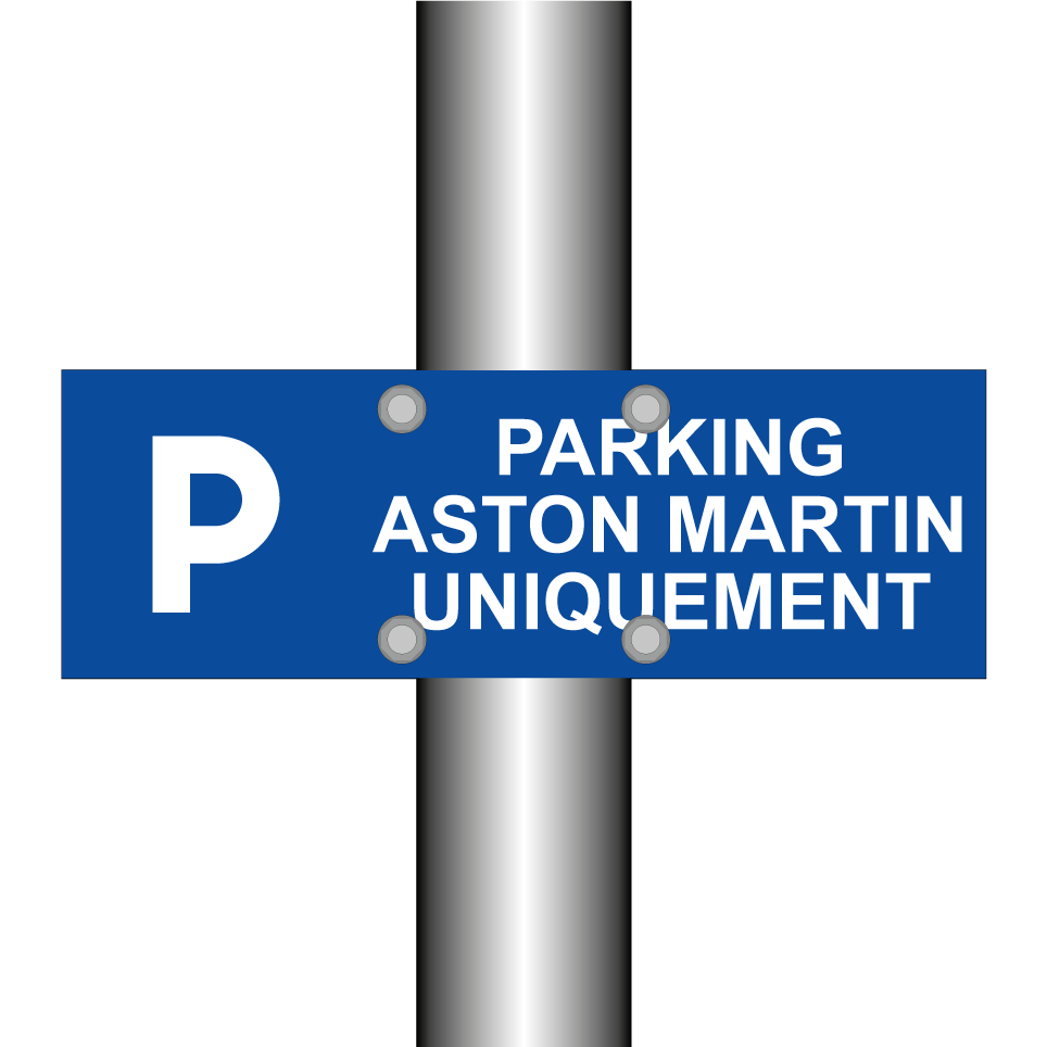Panneau de stationnement avec le texte : "Parking Aston Martin uniquement" et une symbolique claire.
