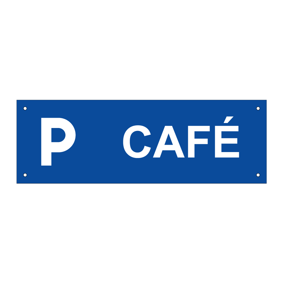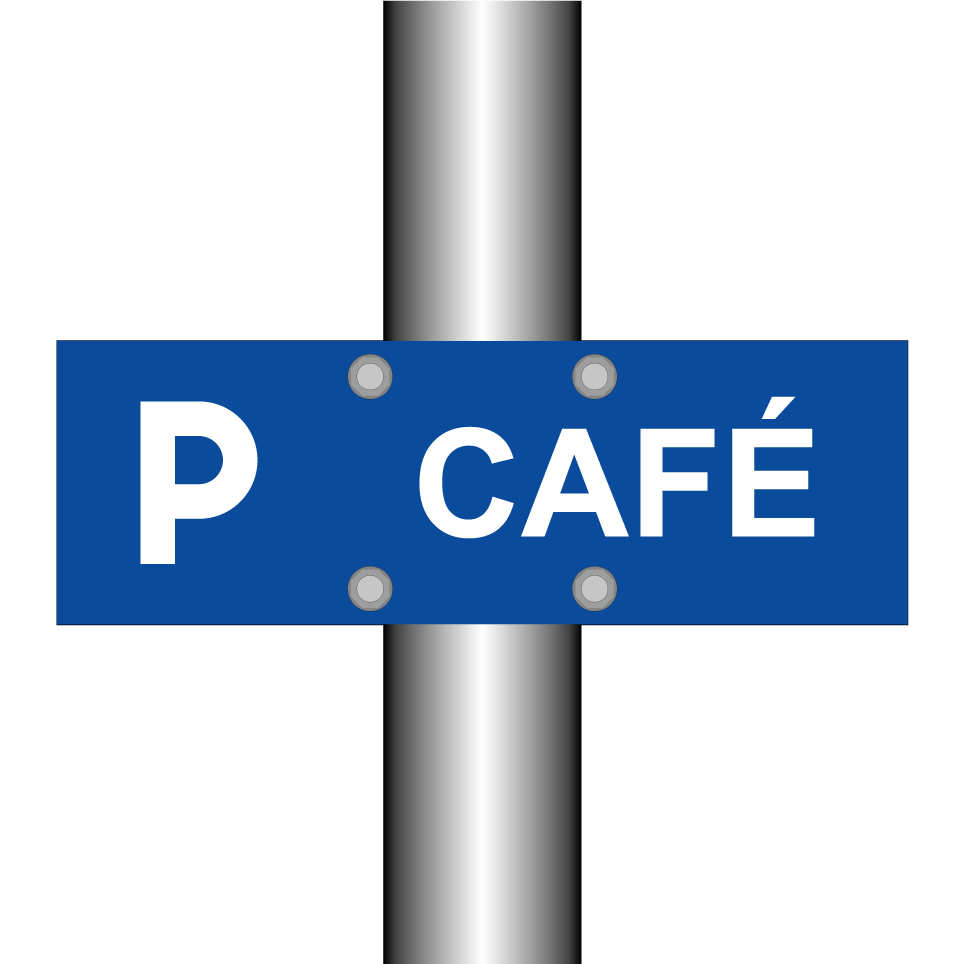 Panneau de stationnement avec le texte : "Café" et une symbolique claire.