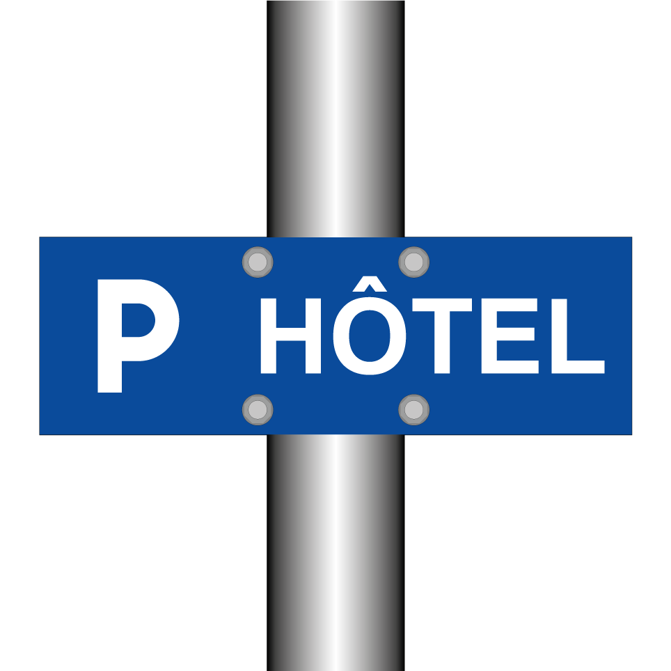 Panneau de stationnement avec le texte : "Hôtel" et une symbolique claire.
