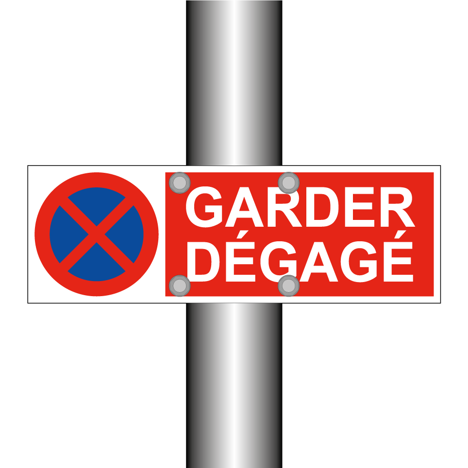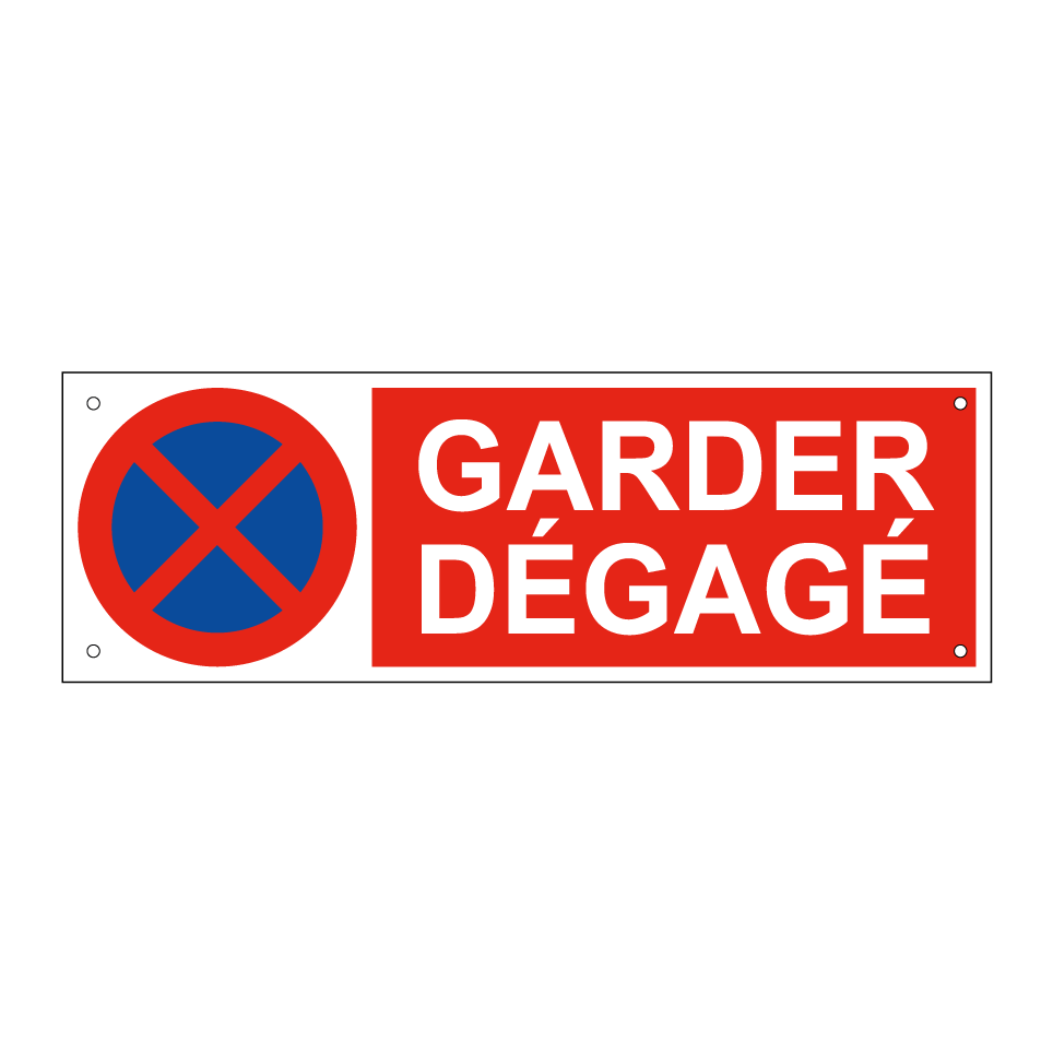 Panneau d'interdiction de stationner avec le texte : "Garder dégagé" et une symbolique claire.