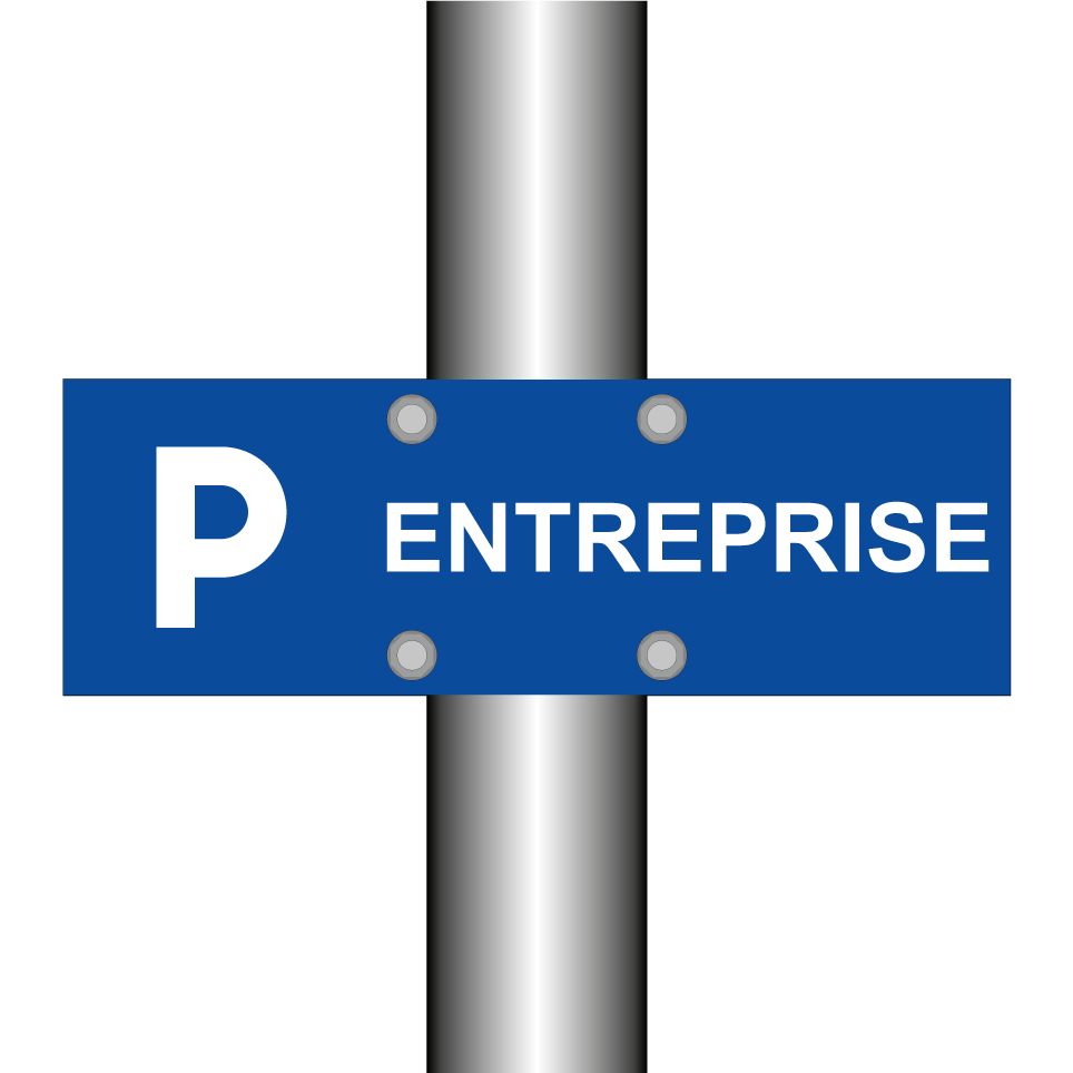 Panneau de stationnement avec le texte : "Entreprise" et une symbolique claire.