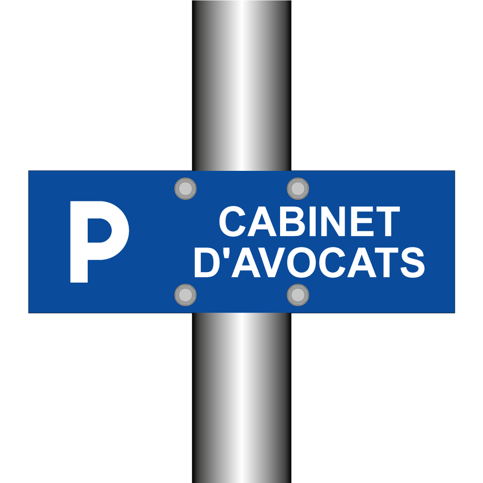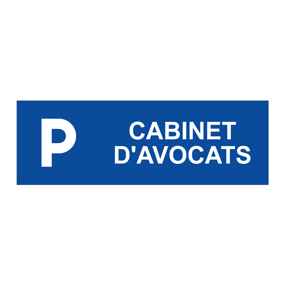 Panneau de stationnement avec le texte : "Cabinet d'avocats" et une symbolique claire.