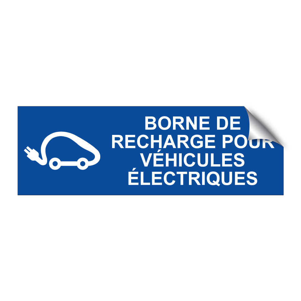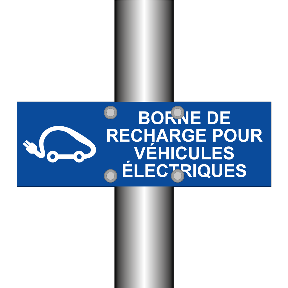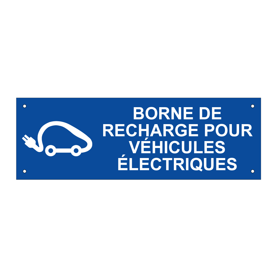 Panneau de stationnement avec le texte : "Borne de recharge pour véhicules électriques" et une symbolique claire.