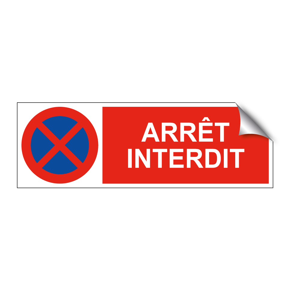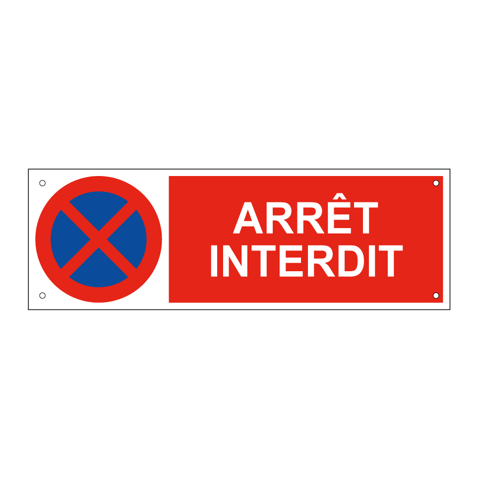 Panneau d'interdiction de stationner avec le texte : "Arrêt interdit" et une symbolique claire.